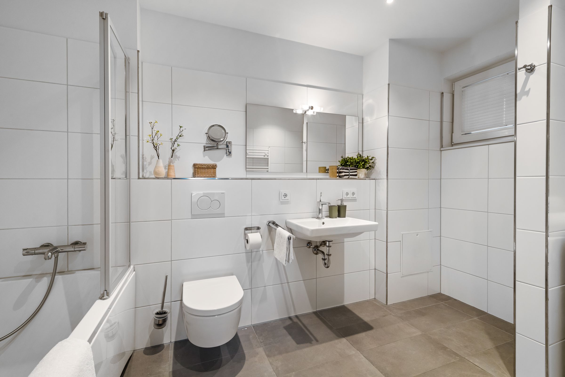 Das Badezimmer ist mit Fußbodenheizung und Whirlwanne ein wahrer Wohlfühlort und lässt keine Wünsche offen.