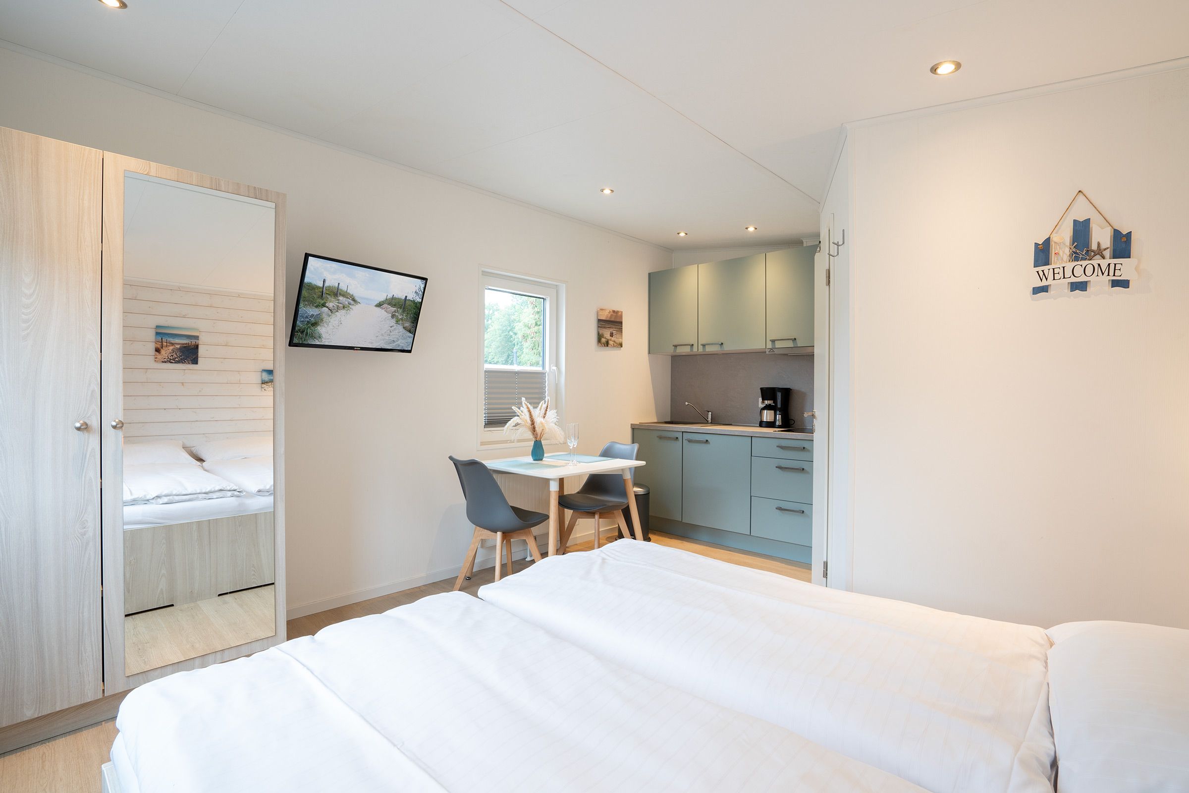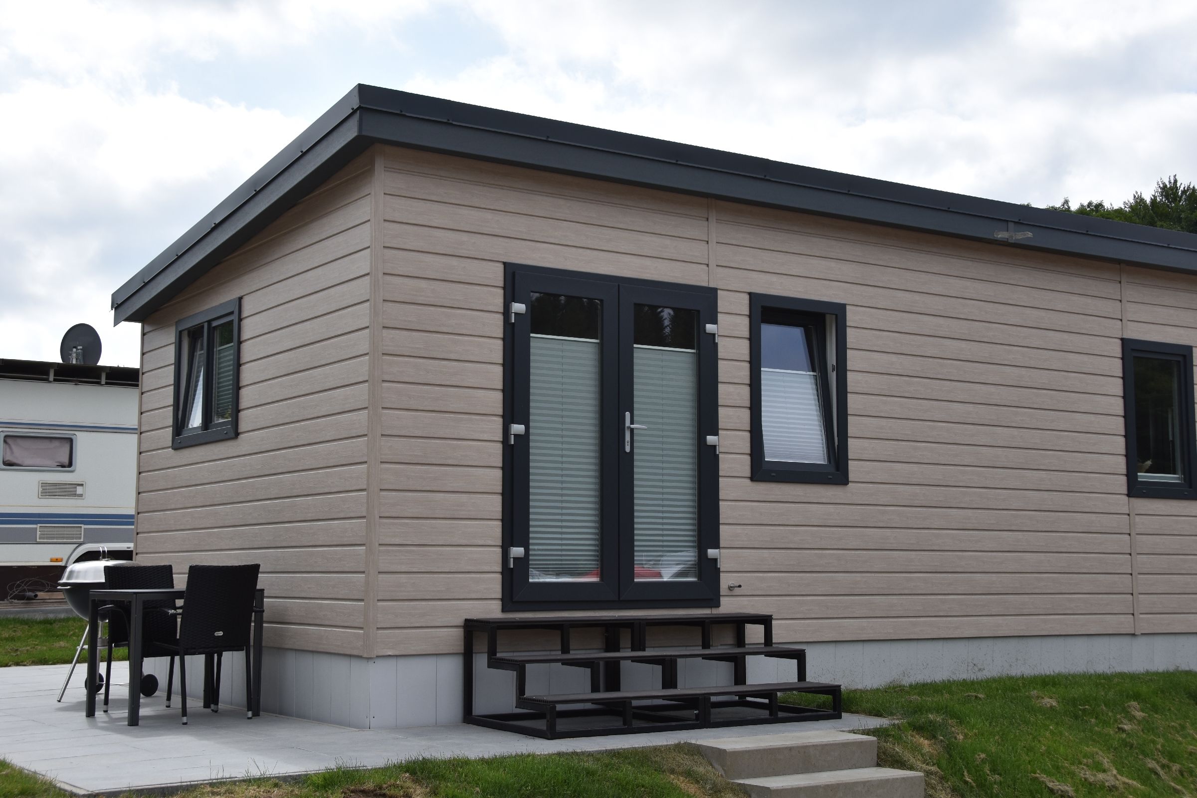 Unser Ferienhaus ist für 2 Personen ausgelegt und besitzt jeweils eine eigene Küche, sowie ein Badezimmer und 1 Wohn / Schlafzimmer. Auf der Terrasse haben Sie die Möglichkeit, im Freien zu frühstücken, abends zu grillen oder einfach in der Sonne zu entspannen. Zu jedem Ferienhaus gehört ein eigener Pkw-Stellplatz.