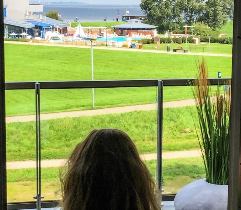 Sie gelangen über den Fahrstuhl oder über die Treppe in Ihr Domizil. Durch den Flur mit geschickt integrierter Garderobe geht es in den sehr stilvoll eingerichteten Wohn- und Essbereich mit hochwertiger Ledergarnitur und einem Holzkaminofen für kühlere Tage. Für Unterhaltung ist dank eines Flat-TV und eines CD/MP3-Players mit Bluetoothoption für Smartphones gesorgt. Eins ist sicher - hier erleben Sie Erholung pur! Für die warmen und sonnigen Tage können Sie auf der großzügigen Dachterrasse mit elektrischer Markise und hochwertigen Gartenmöbeln entspannen. Wie der Name schon verrät, haben Sie hier einen hervorragenden Panorama-Ausblick auf den Jadebusen - einfach magisch!