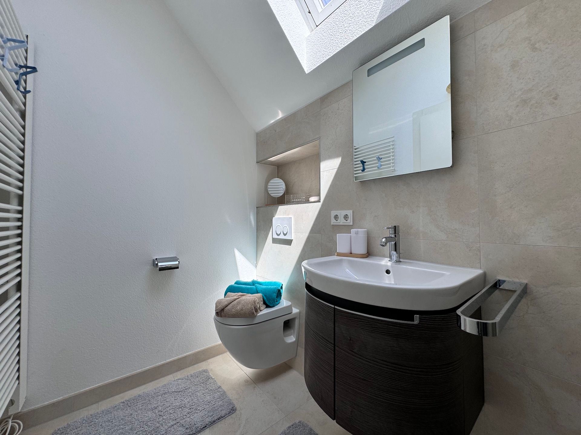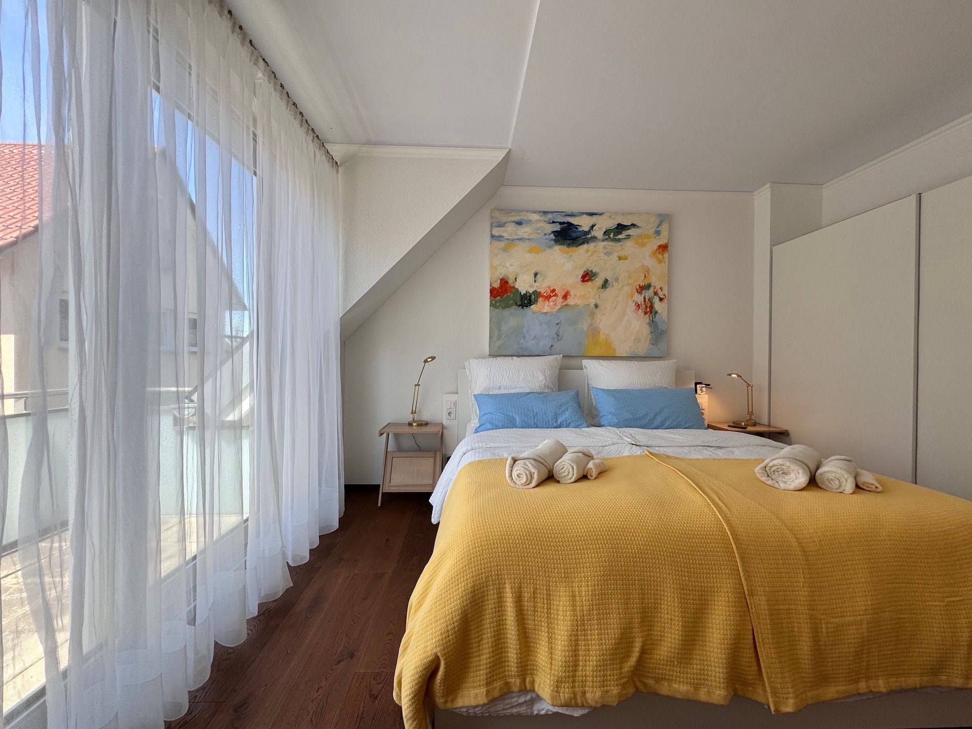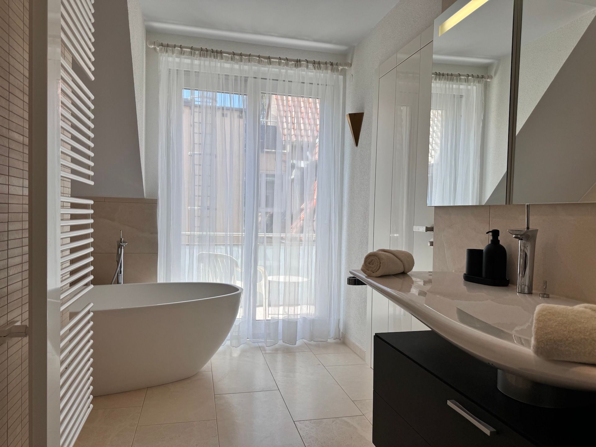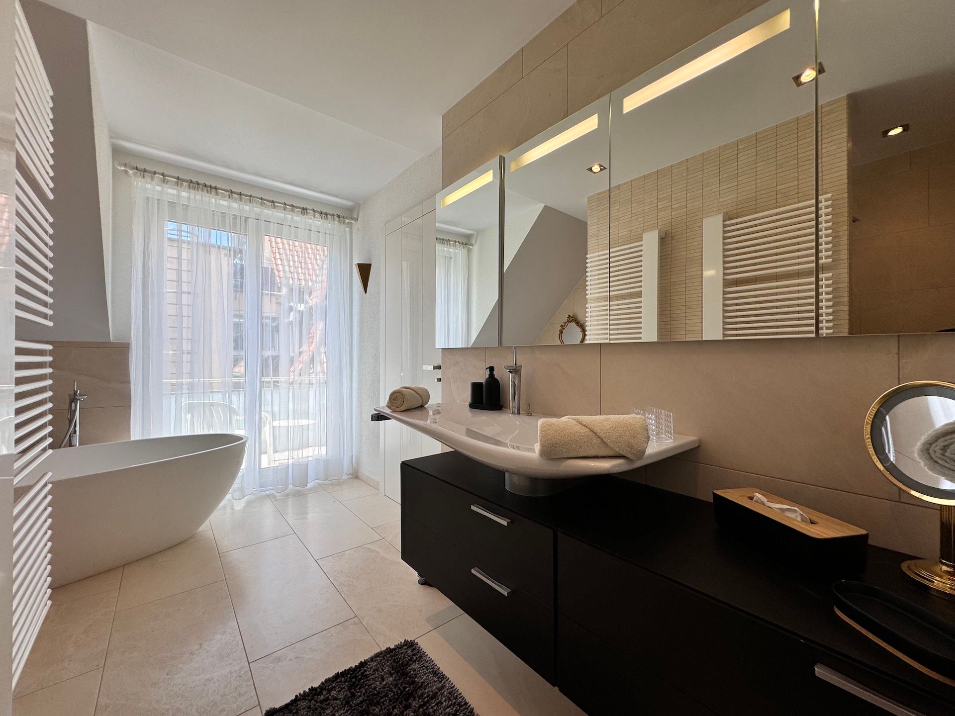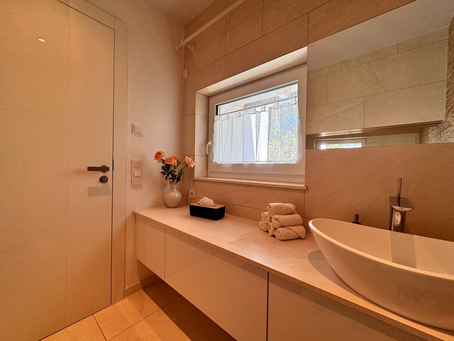 Sie verfügen selbstverständlich über einen WLAN-Anschluss, der eine Internetgeschwindigkeit ab 25 MBit/s bietet, sodass Sie immer in Verbindung bleiben können. Für Unterhaltung sorgen zwei Fernseher mit Kabelanschluss und internationalen Kanälen, sowie eine Auswahl an Spielen und Büchern. Darüber hinaus stehen Ihnen Waschmaschine und Trockner in der Wohnung zur Verfügung, sodass Sie auch während eines längeren Aufenthalts nicht auf Komfort verzichten müssen. Zwei Stellplätze in der Hauseigenen Garage sowie ein dritter Stellplatz im gegenüberliegenden Parkhaus stehen Ihnen während Ihres Aufenthalts zur Verfügung.