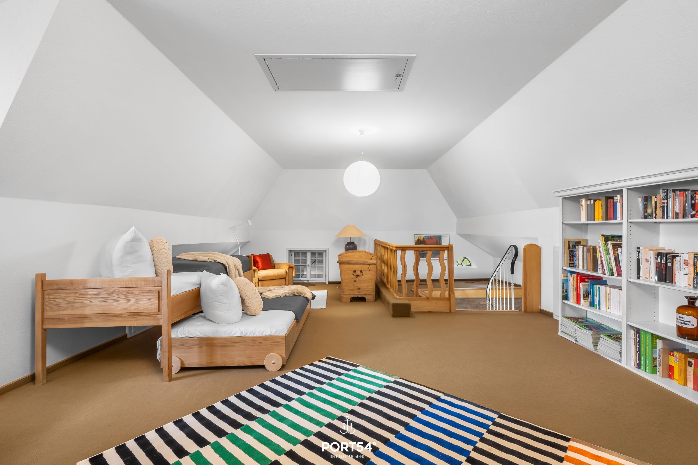 Die Lage des Hauses ist besonders attraktiv: Es befindet sich ca. 300 Meter von einem See entfernt und bietet somit eine direkte Anbindung an unvergessliche Naturschönheiten. Für romantische Spaziergänge oder sportliche Aktivitäten wie Radfahren und Wandern bieten sich die Umgebung und die hervorragenden Landschaftsblicke an. Die Nordseeküste mit Blick auf das Wattenmeer und die Halligen ist nicht weit entfernt. Du kannst die Seele baumeln lassen, während Du die Aussicht auf die umliegende Natur bewunderst oder einmal eine Wattwanderung unternimmst. Ob Du Abenteuer in der Natur suchst oder einfach nur entspannen möchtest, das Reetachhaus Holländerdeich ist die ideale Wahl für Deinen nächsten Urlaub.