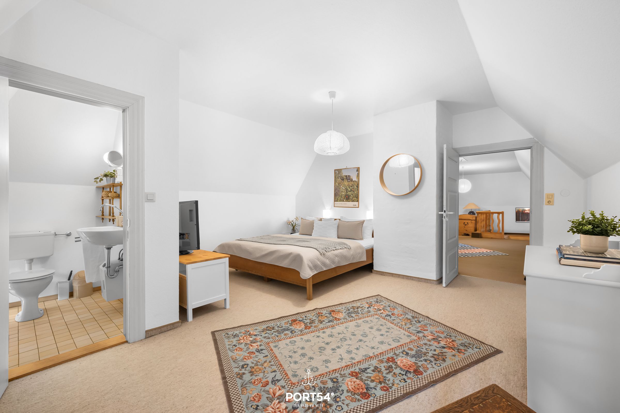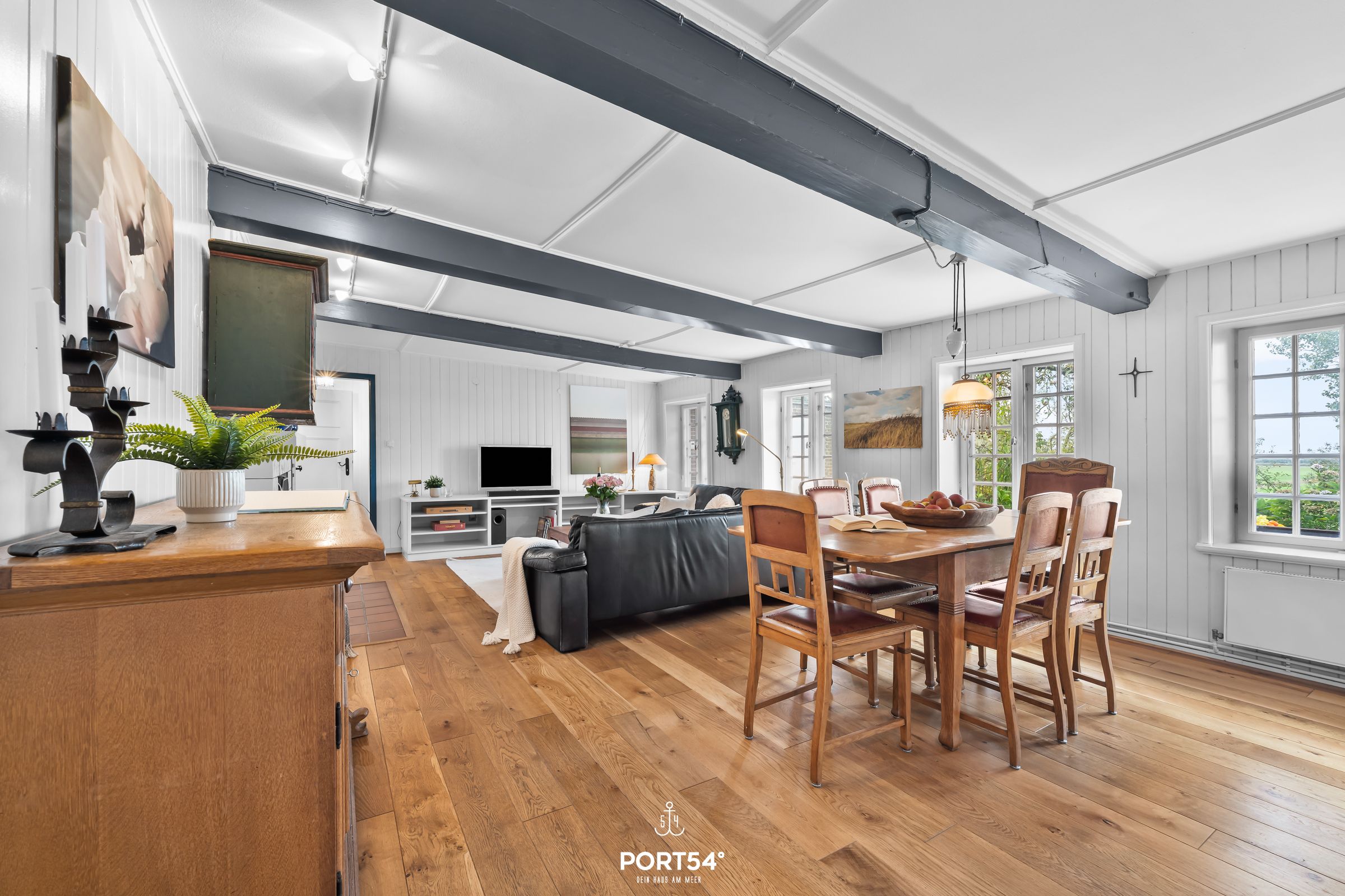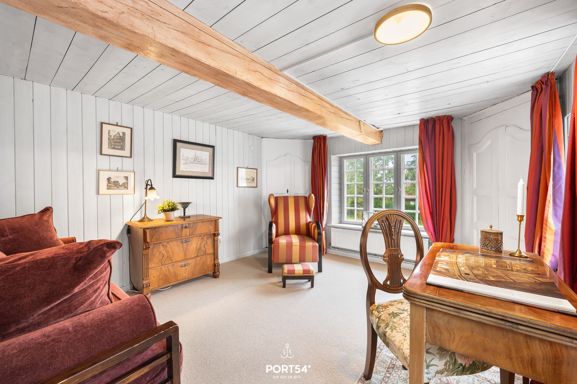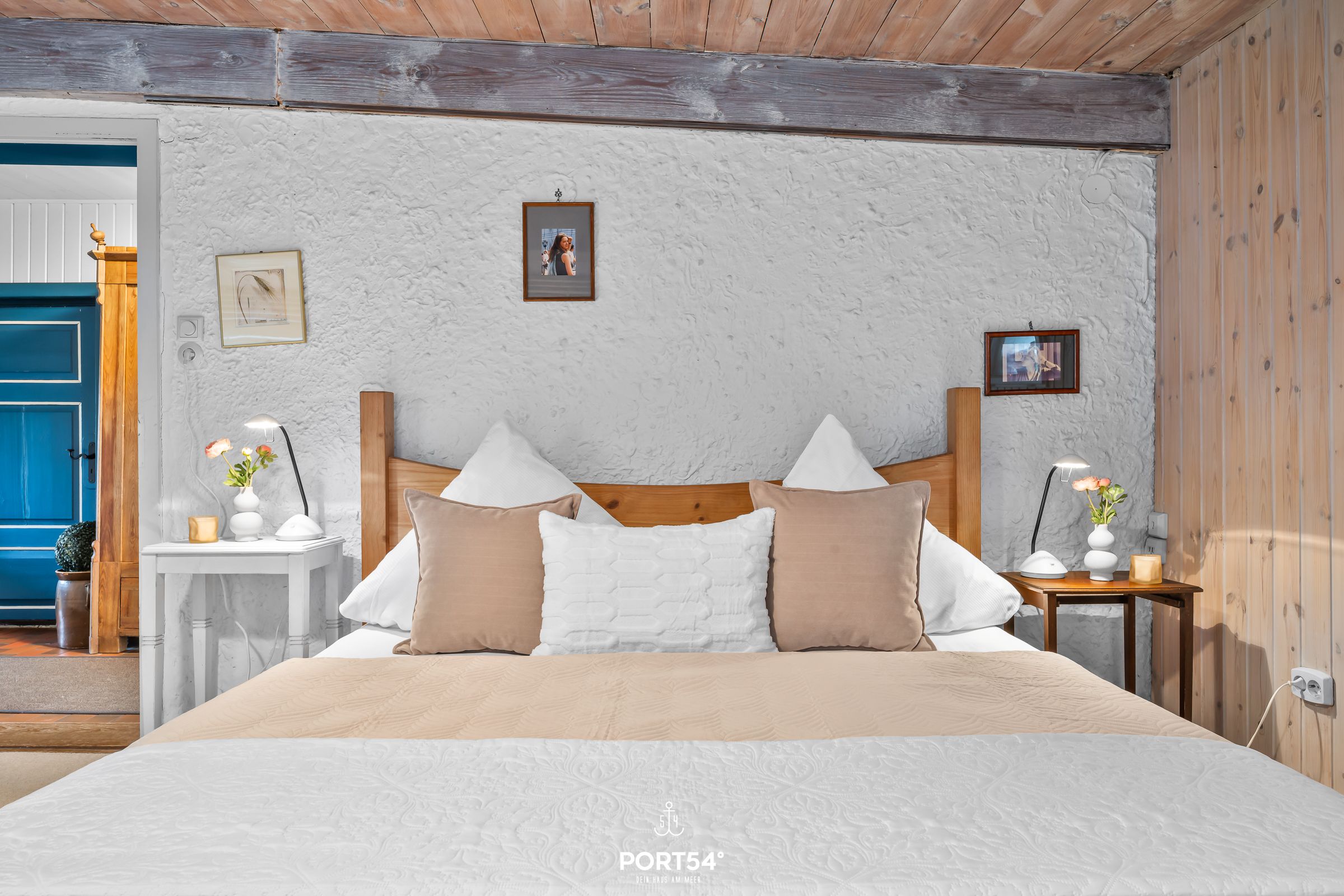 Mit einer Gesamtfläche von fünf Zimmern, darunter drei Schlafzimmer, und zwei großzügigen Terrassen ist das Haus komfortabel konzipiert, um all Ihre Bedürfnisse zu erfüllen. Das Innere des Ferienhauses ist geschmackvoll und funktional eingerichtet und ausgestattet. Die Küche ist mit sämtlichen erforderlichen Geräten bestückt, einschließlich einer Spülmaschine, einem Cerankochfeld, einem Elektrobackofen, einer Mikrowelle mit Grill, einem Kühlschrank mit Gefrierfach und weiteren nützlichen Küchenutensilien. Die beiden Esstische in Wohnzimmer und Küche sowie Sofas und Couchtisch laden dazu ein, gesellige Abende zu verbringen, während Du den Blick durch die Fenster an den alten Bäumen vorbei in die weite Landschaft genießen. Eine komfortable Ausstattung sorgt für einen angenehmen Aufenthalt: Das Wohnzimmer ist mit einer Soundbar und einem Smart-TV ausgestattet, sodass Du auch in Deinen freien Stunden nicht auf Musik und Unterhaltung nach deinem eigenen Geschmack verzichten müssen. Darüber hinaus befindet sich im Wohnbereich ein dekorativer Kamin, der nicht beheizt werden kann, aber für ein stimmungsvolles Ambiente sorgt. Neben dem Wohnzimmer bietet der «Pesel», eines der Schlafzimmer, einen gemütlichen Ort mit Sofabett, Sessel und Tisch zum stillen Rückzug zum Lesen oder Arbeiten.