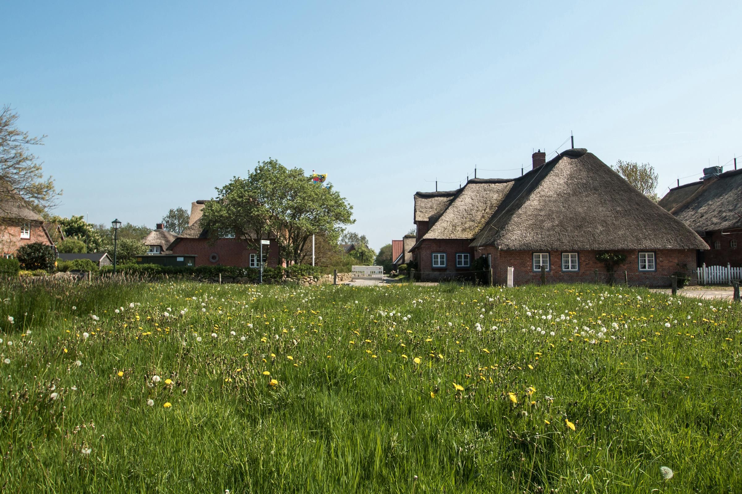 Oldsum ist eines der schönen Friesendörfer im Westen der Insel Föhr. Charakteristisch für das Dorf sind seine wunderschönen Friesenhäuser. Das Reethus „Glücklicher Matthias“ ist eine dieser Sehenswürdigkeiten.