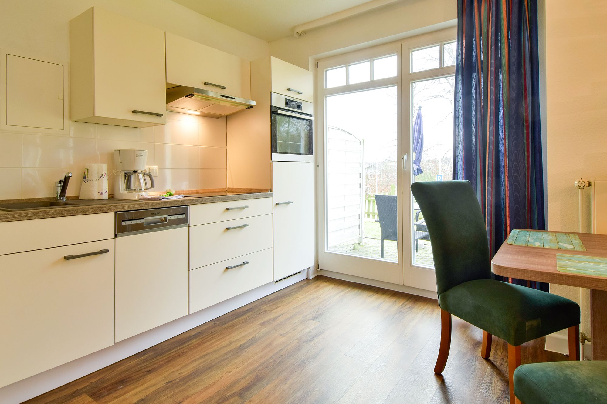 Die Wohnung befindet sich im Erdgeschoss und heißt auch Haustiere herzlich willkommen. Mit Blick zum Buchenpark genießen Sie außerdem die Ruhe in der Ferienwohnung.