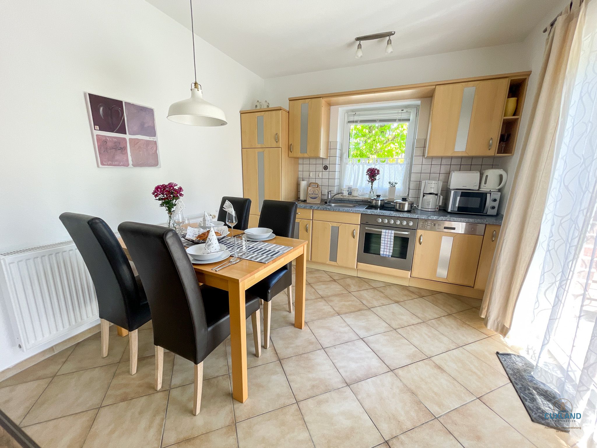 Essbereich mit offener Küche, in welcher sich jede Menge Leckereien zaubern