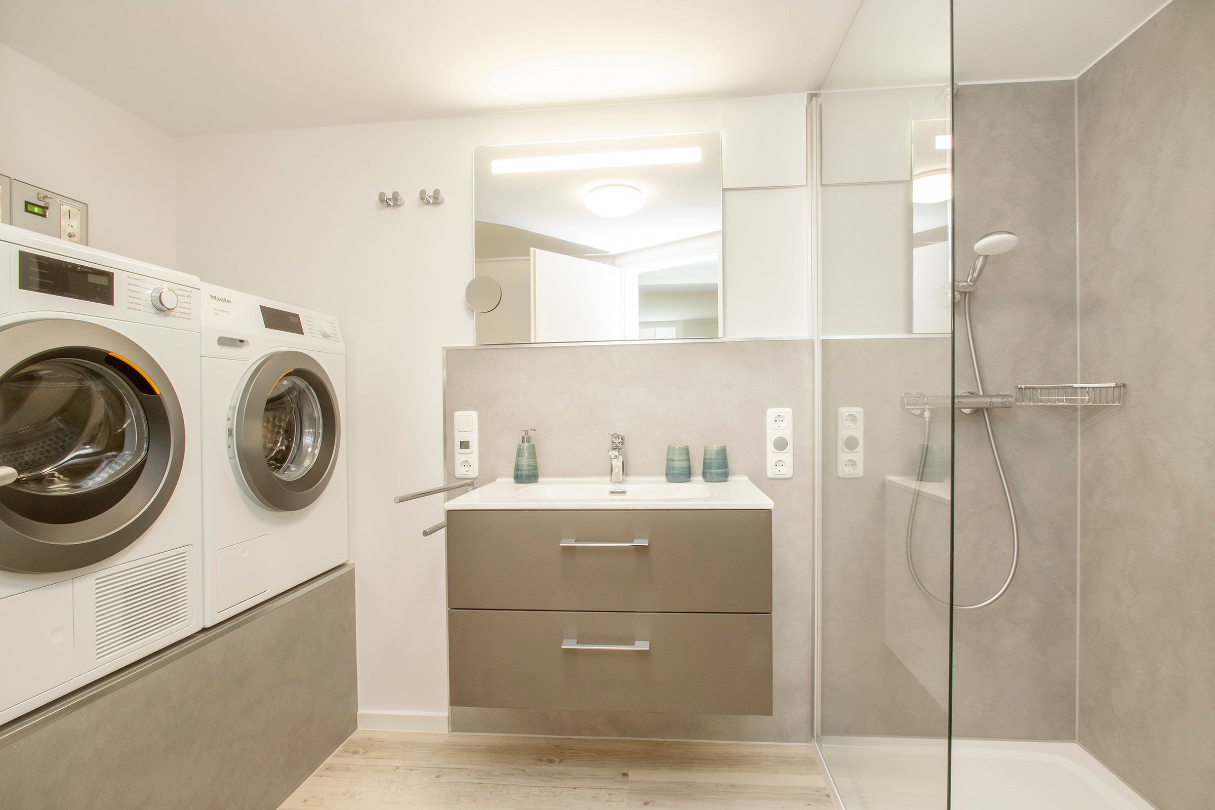 Des weiteren stehen Waschmaschine und Trockner ( kostenpflichtig € 2,--/ Maschine ) zur Verfügung.