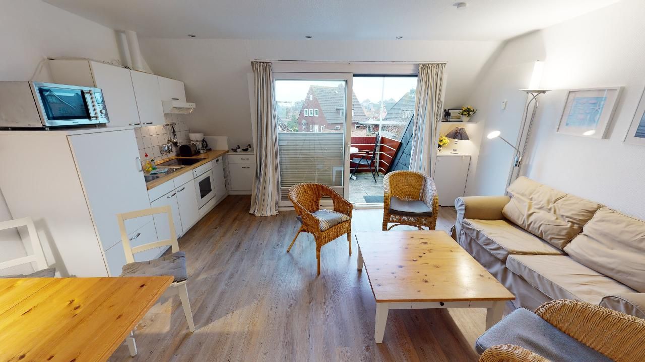 Der Wohnbereich bietet für zwei weitere Gäste eine Schlafmöglichkeit.