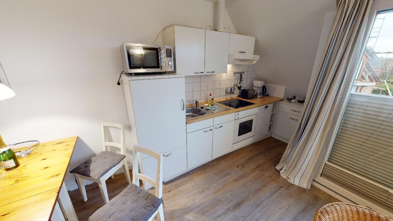 Auf ganzen 46qm erwartet Sie ein Wohnbereich mit offener Küche und Zugang zu