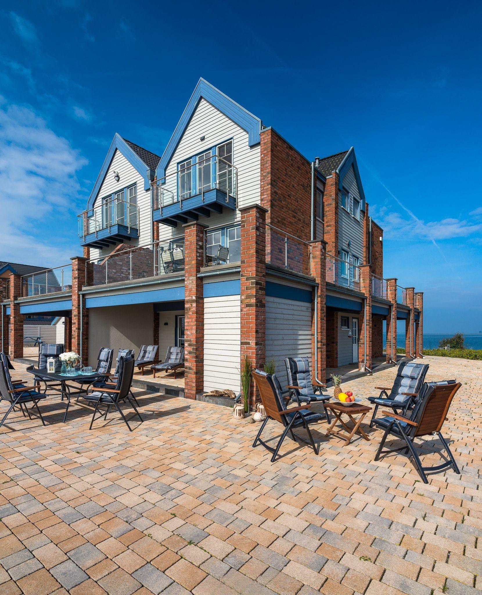 Wunderschönes, großes Ferienhaus "Schatzinsel" im Ostseeresort Olpenitz mit Blick auf die Ostsee und die Schlei. Das Haus verfügt über ein großes Grundstück mit eigenem Bootsanleger. Über drei Etagen erstrecken sich insgesamt 178 qm Wohnfläche, die mit allem ausgestattet sind, was für einen entspannten Urlaub an der Ostsee gewünscht ist. Das gesamte Haus ist im modernen Landhausstil mit maritimen Flair gestaltet.