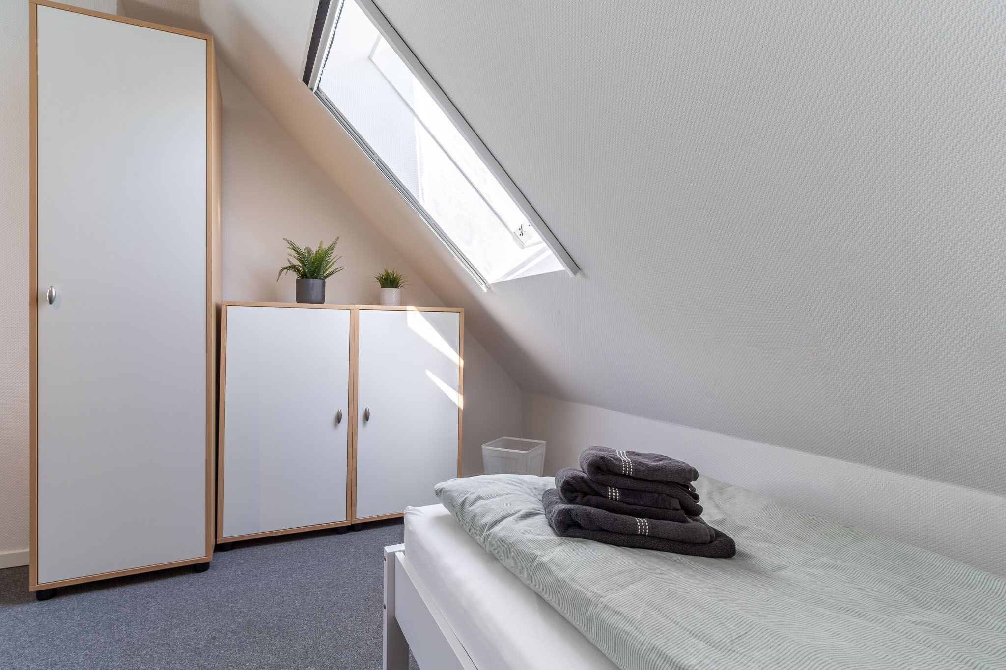 Im ersten Schlafzimmer finden Sie ein bequemes Ausziehbett, das als Einzel- oder Doppelbett genutzt werden kann, sowie eine praktische Kommode. Nach einem erlebnisreichen Tag in Sankt Peter-Ording können Sie hier wunderbar entspannen und neue Energie tanken. Das Duschbad sorgt für die nötige Erfrischung nach einem Tag am Strand.
