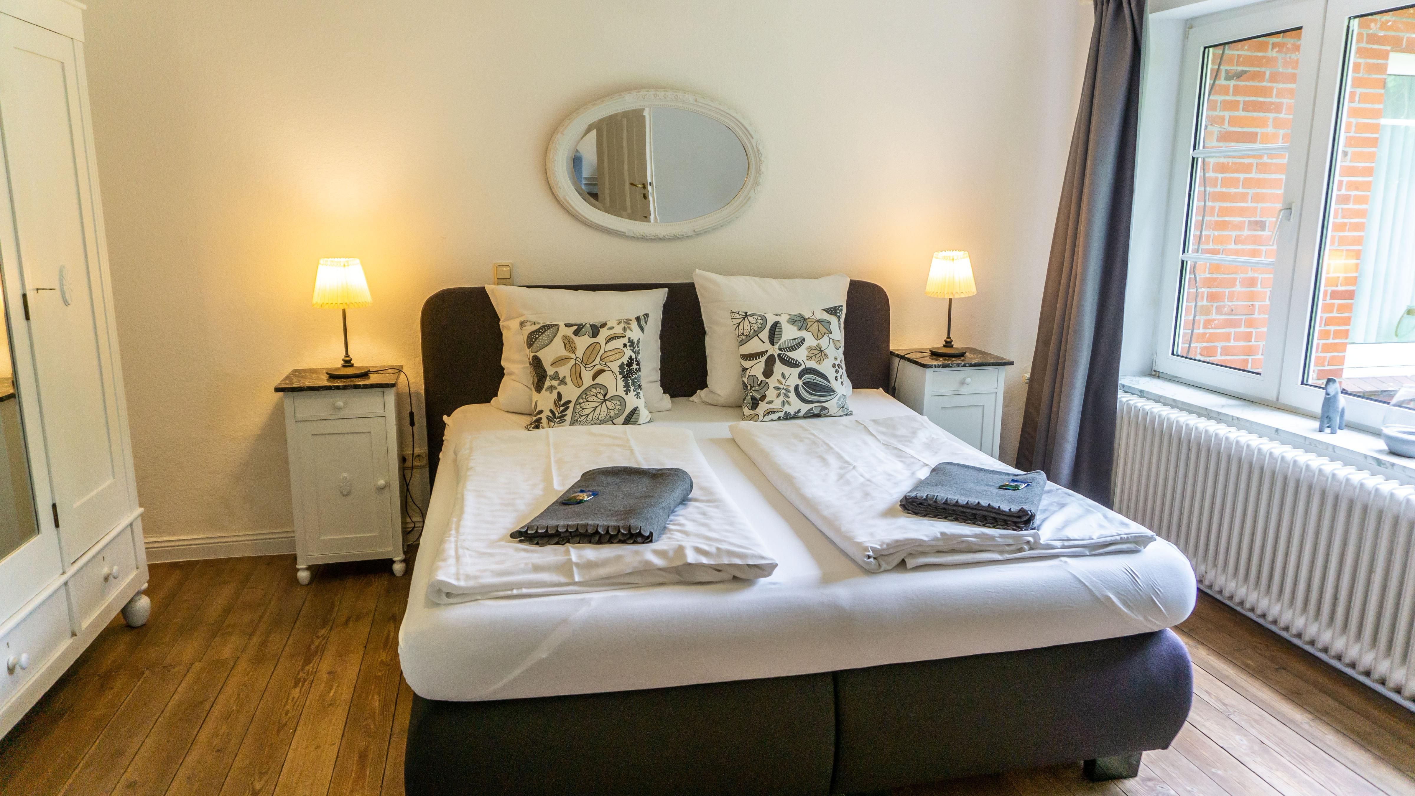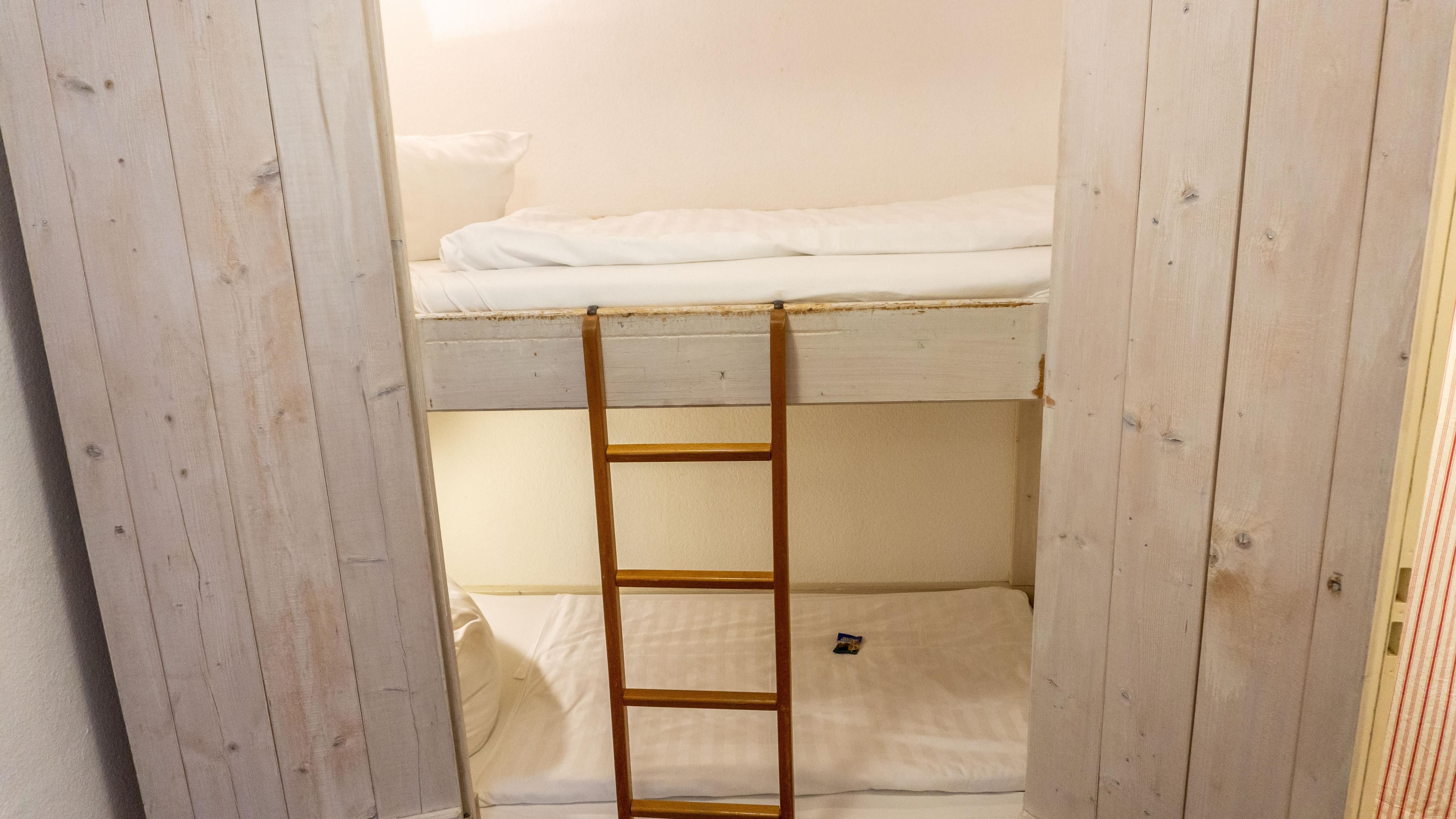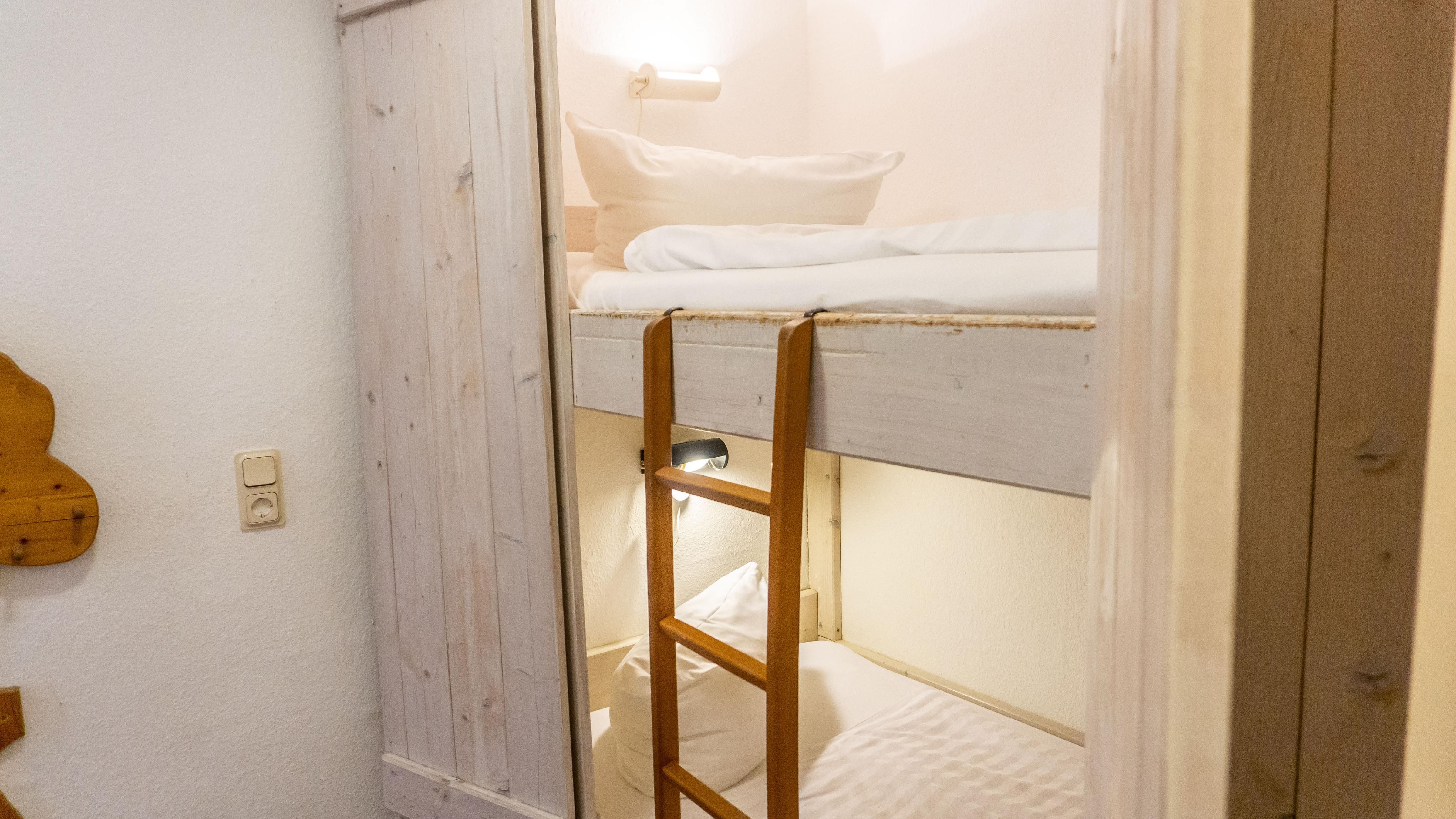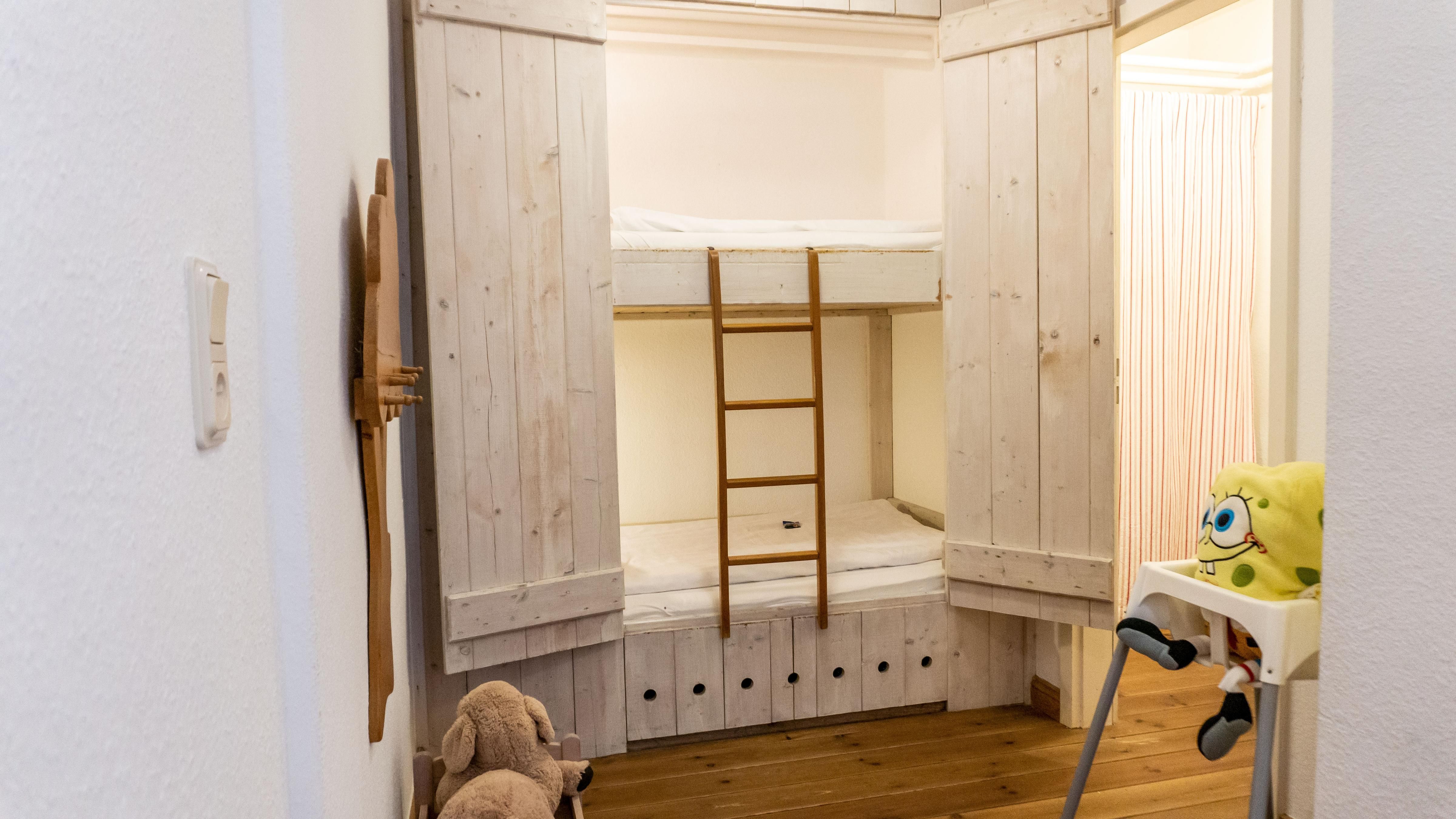 Die zwei Schlafzimmer bieten komfortable Schlafmöglichkeiten, und Familie mit Kindern profitieren von den kindgerechten Alkovenbett als Etagenbett, 2x 180cm x 90 cm. Das Doppelbettschlafzimmer bietet 180 cm x 200 cm Platz zum Schlafen.
