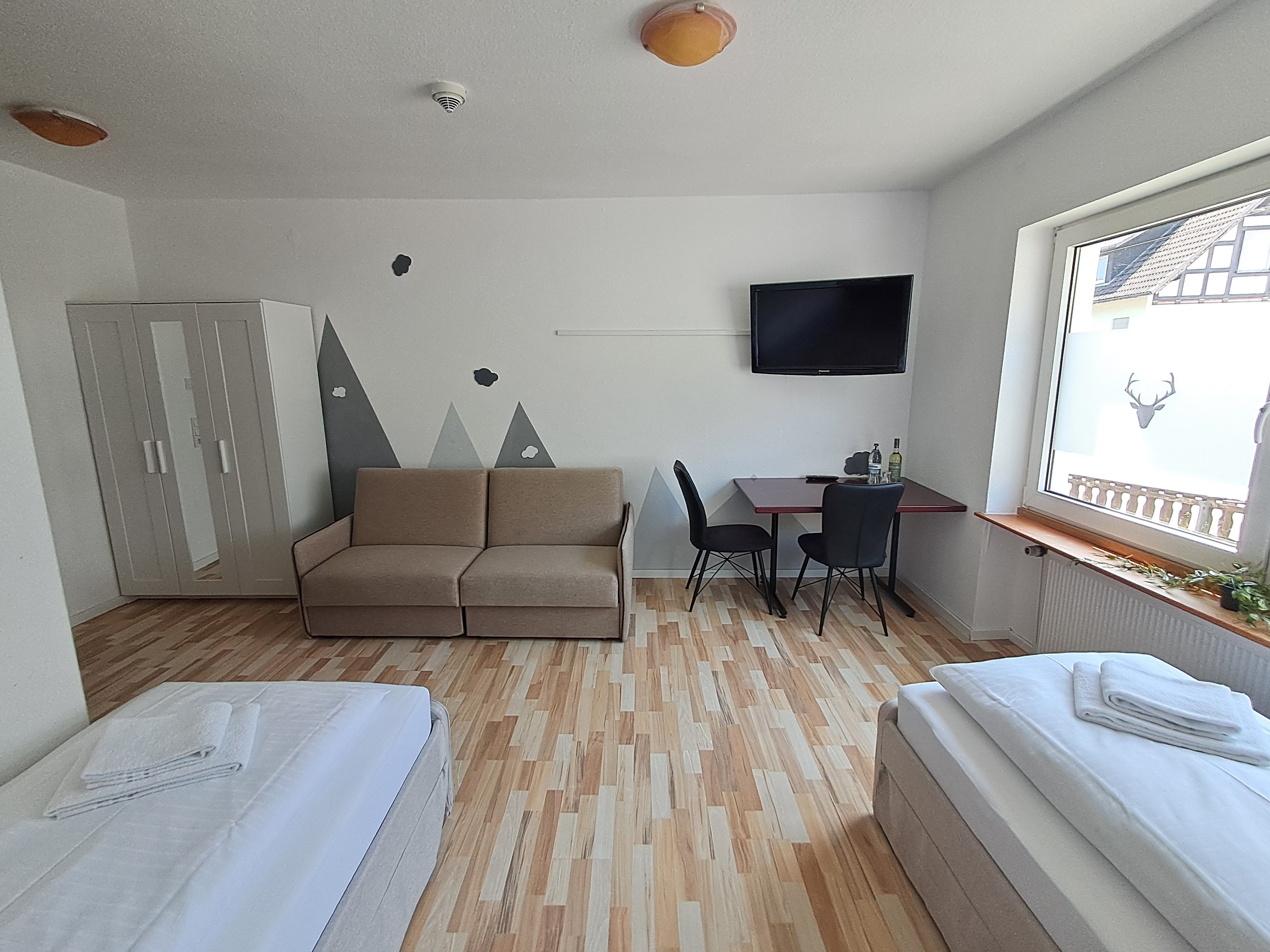 Alle unsere Zimmer sorgfältig ausgewählte Annehmlichkeiten, die Ihren Aufenthalt so angenehm wie möglich gestalten. Jedes Zimmer verfügt über kostenfreies WLAN, einen Fernseher, eine individuell einstellbare Heizung, einen Kleiderschrank oder eine Garderobe. Zudem verfügt jedes Zimmer über ein Duschbad.