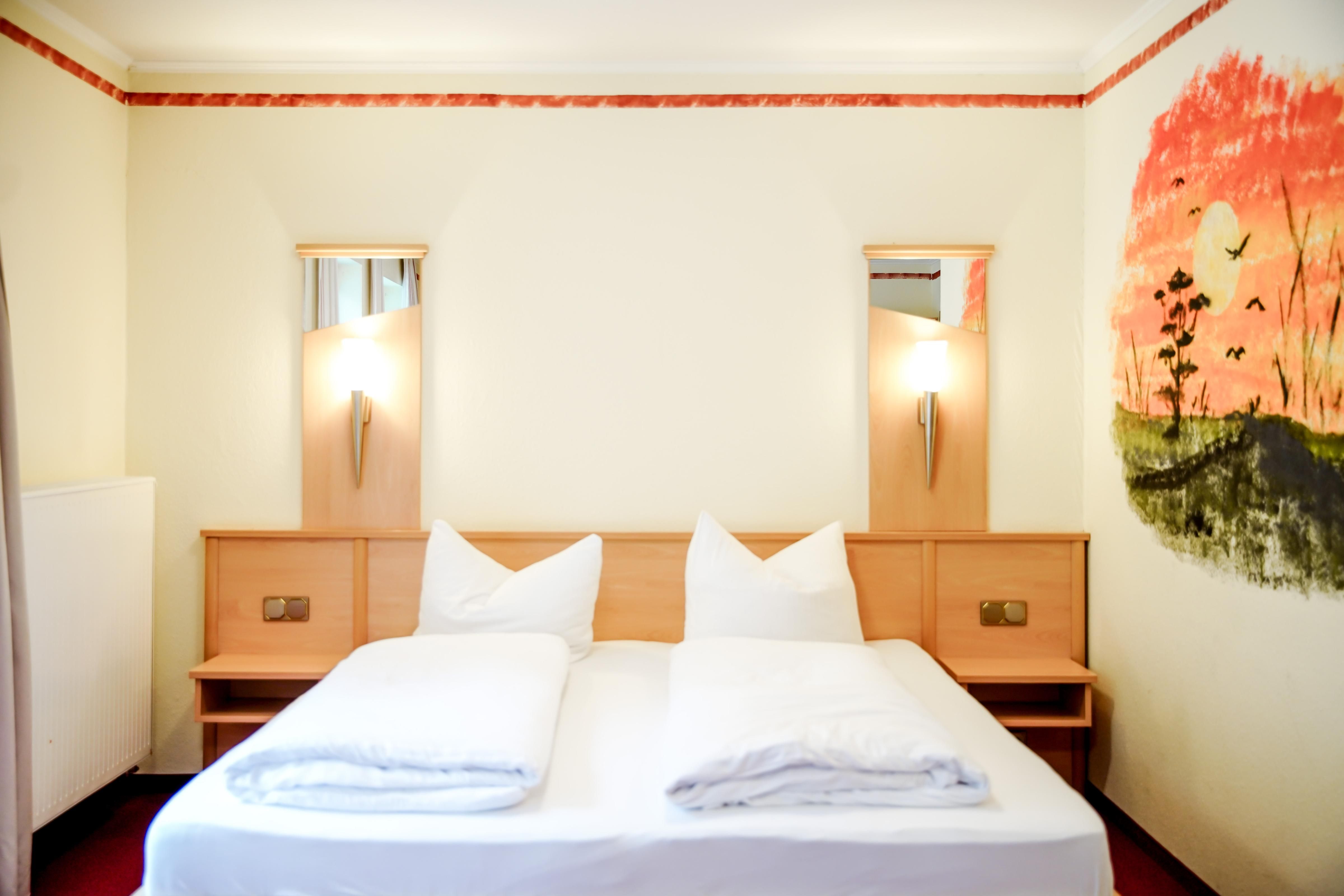 Herzlich willkommen in unserem charmanten Zimmer, das perfekt für zwei Personen geeignet ist. Mit einer großzügigen Fläche von 25 qm bietet es viel Raum zum Entspannen und Wohlfühlen. Ausgestattet mit einem bequemen Doppelbett sorgt es für eine erholsame Nachtruhe. Ein moderner Fernseher steht Ihnen zur Verfügung, um Ihre Lieblingssendungen zu genießen. Ein Balkon ist vorhanden.