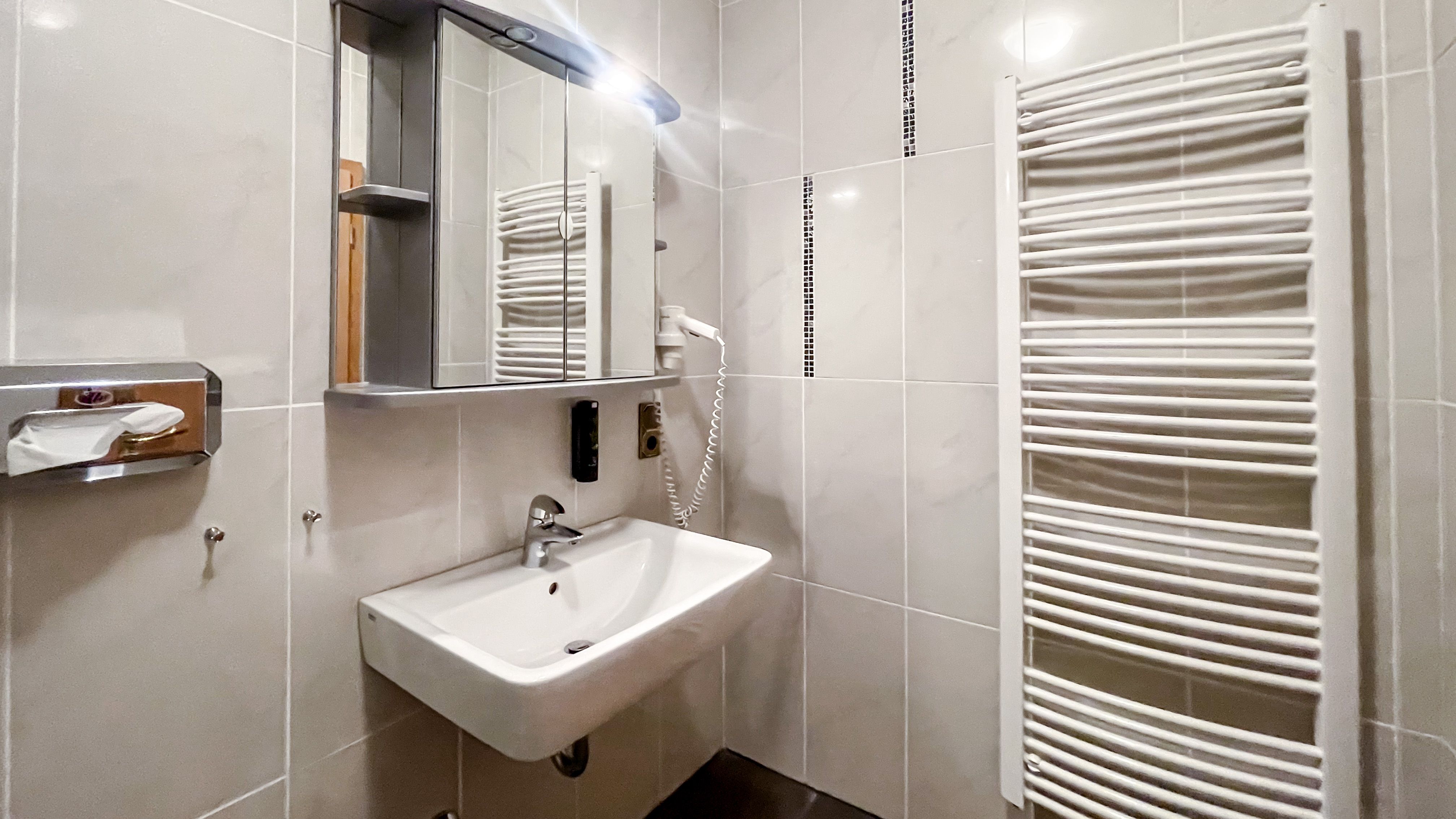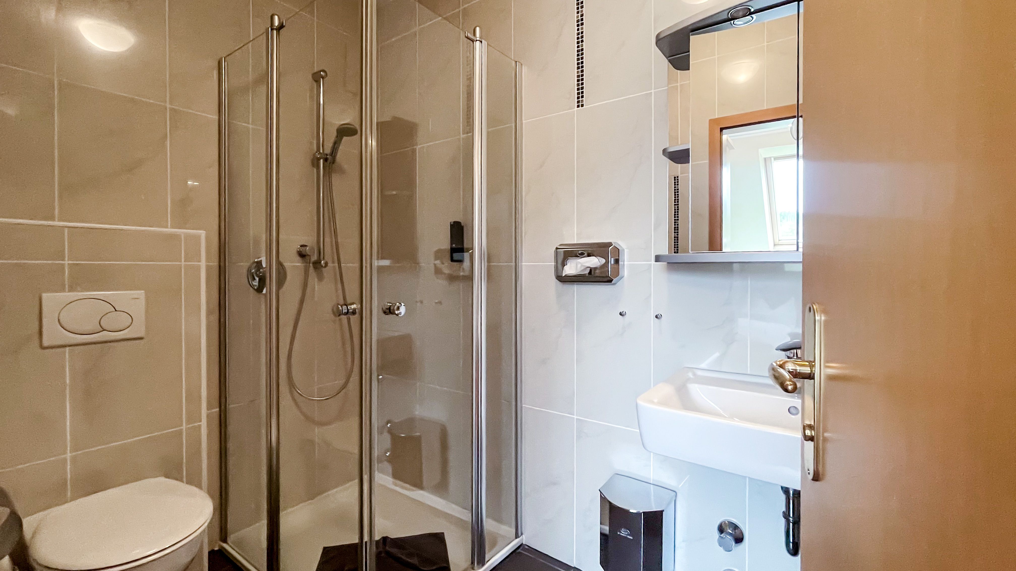 Das angrenzende Duschbad ist sowohl praktisch als auch stilvoll gestaltet und ermöglicht Ihnen eine erfrischende Dusche nach einem langen Tag.