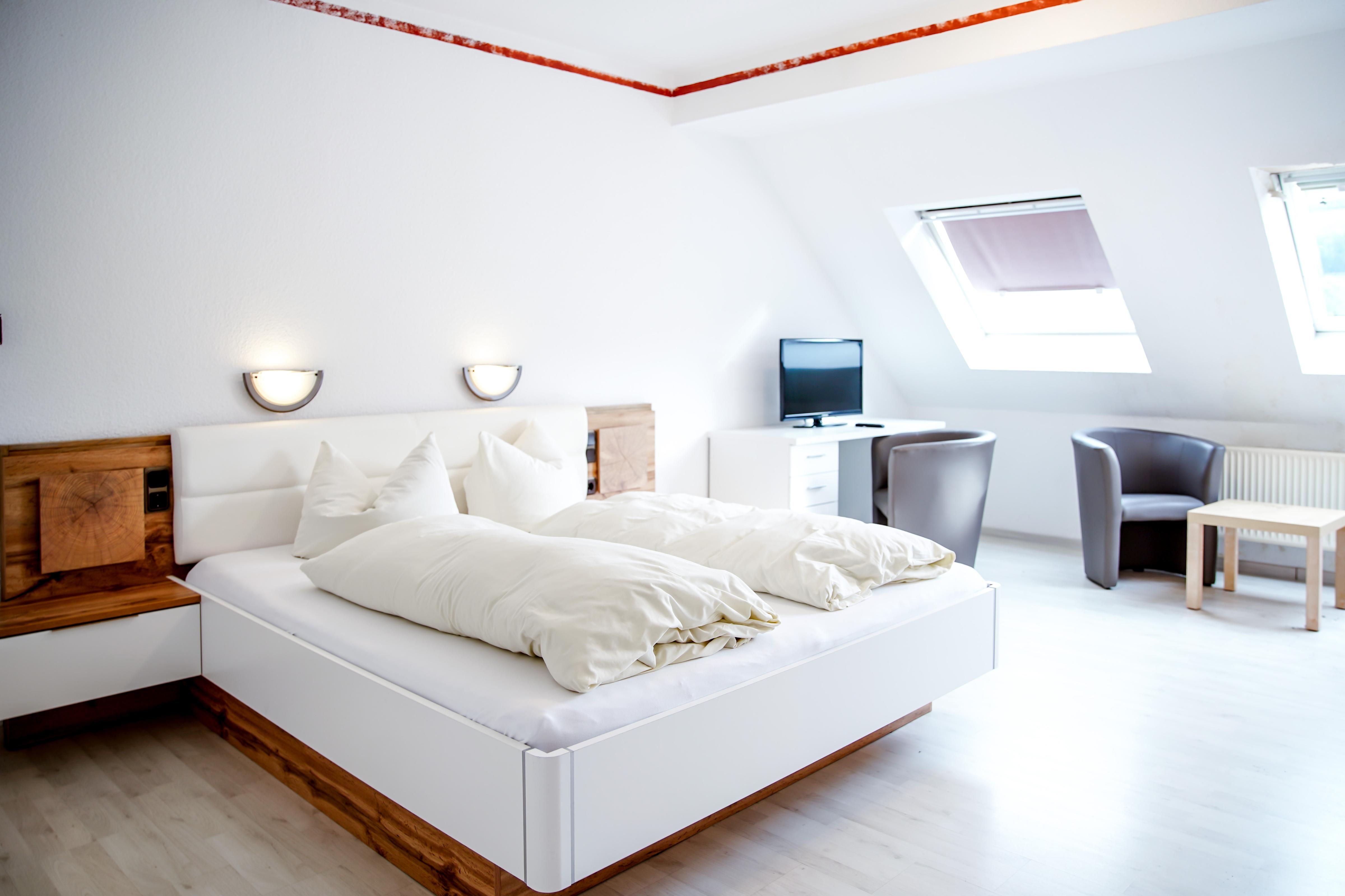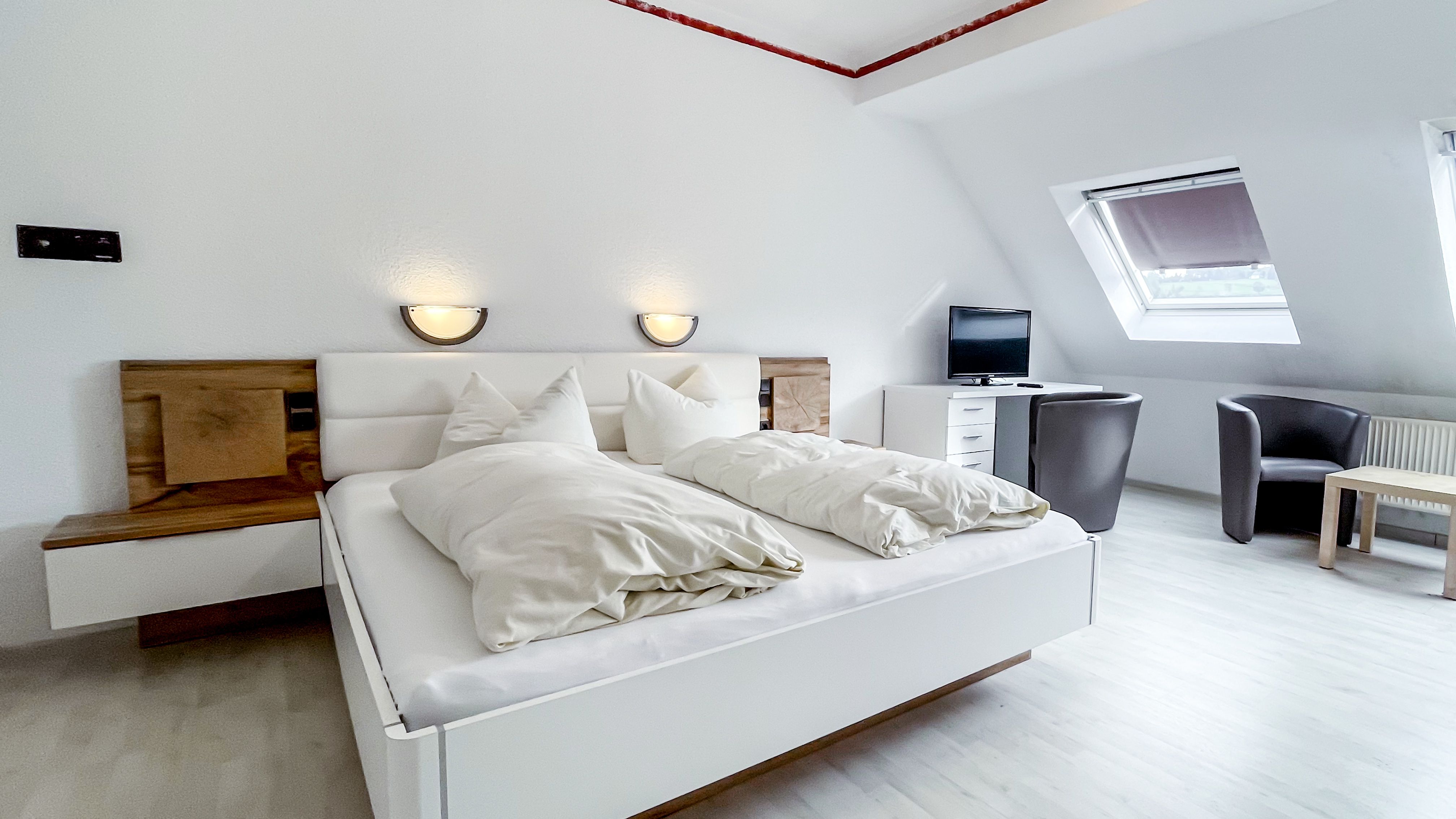 Herzlich willkommen in unserem charmanten Zimmer, das perfekt für drei Personen geeignet ist. Mit einer großzügigen Fläche von 28 qm bietet es viel Raum zum Entspannen und Wohlfühlen. Ausgestattet mit einem bequemen Doppelbett sorgt es für eine erholsame Nachtruhe. Zudem gibt es ein komfortables Einzelbett/Sofa. Zudem ist das Zimmer um ein Raum mit einem Doppelbett erweiterbar. (ohne eigenes Bad) Ein moderner Fernseher steht Ihnen zur Verfügung, um Ihre Lieblingssendungen zu genießen. Ein Balkon ist vorhanden.
