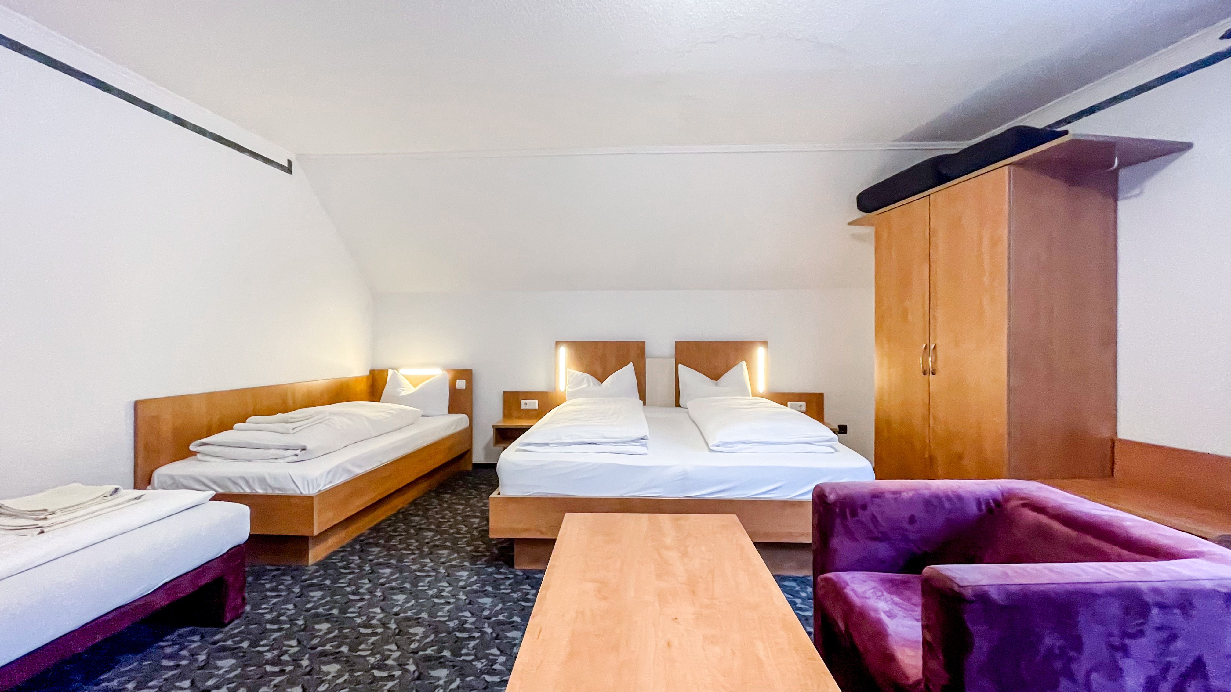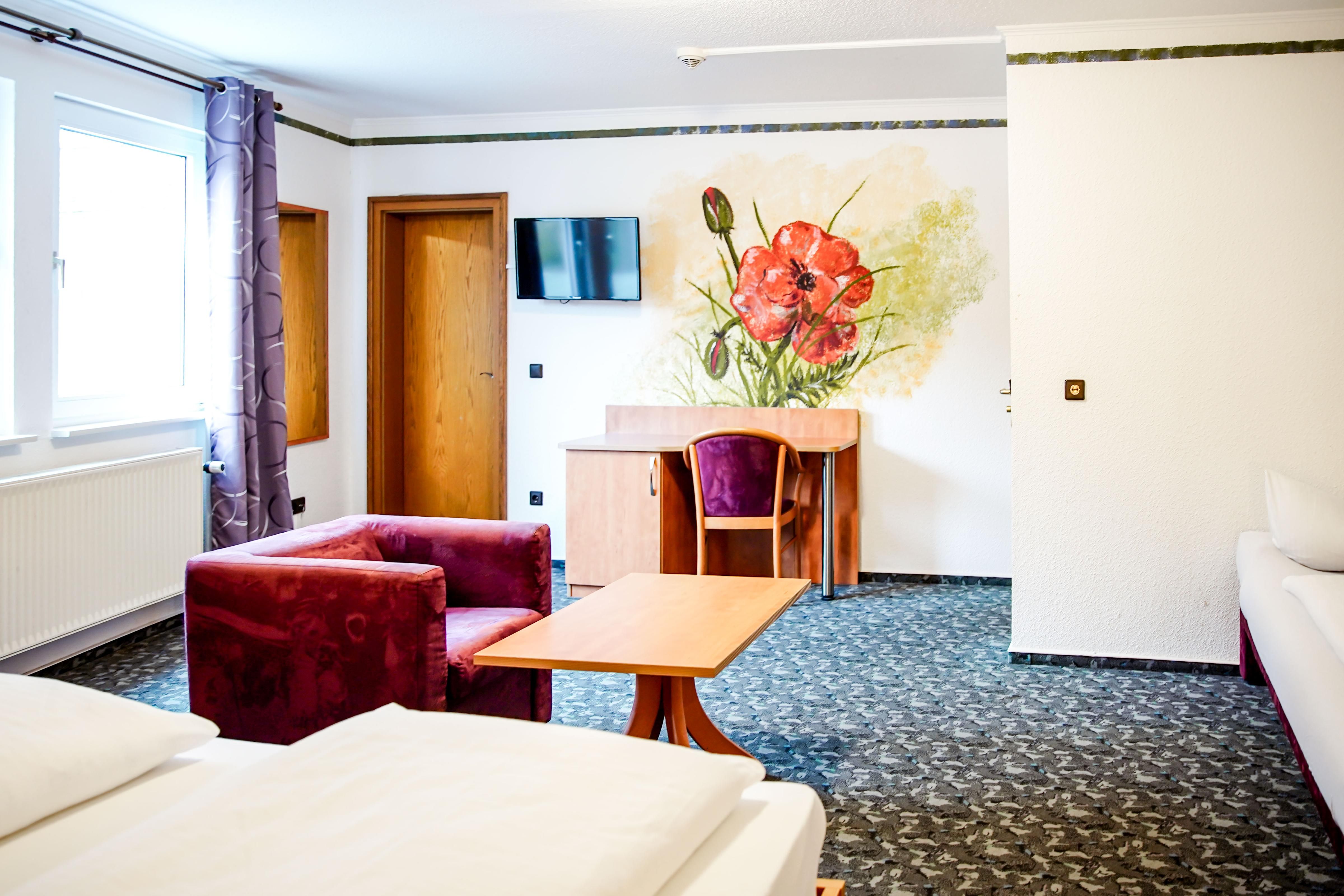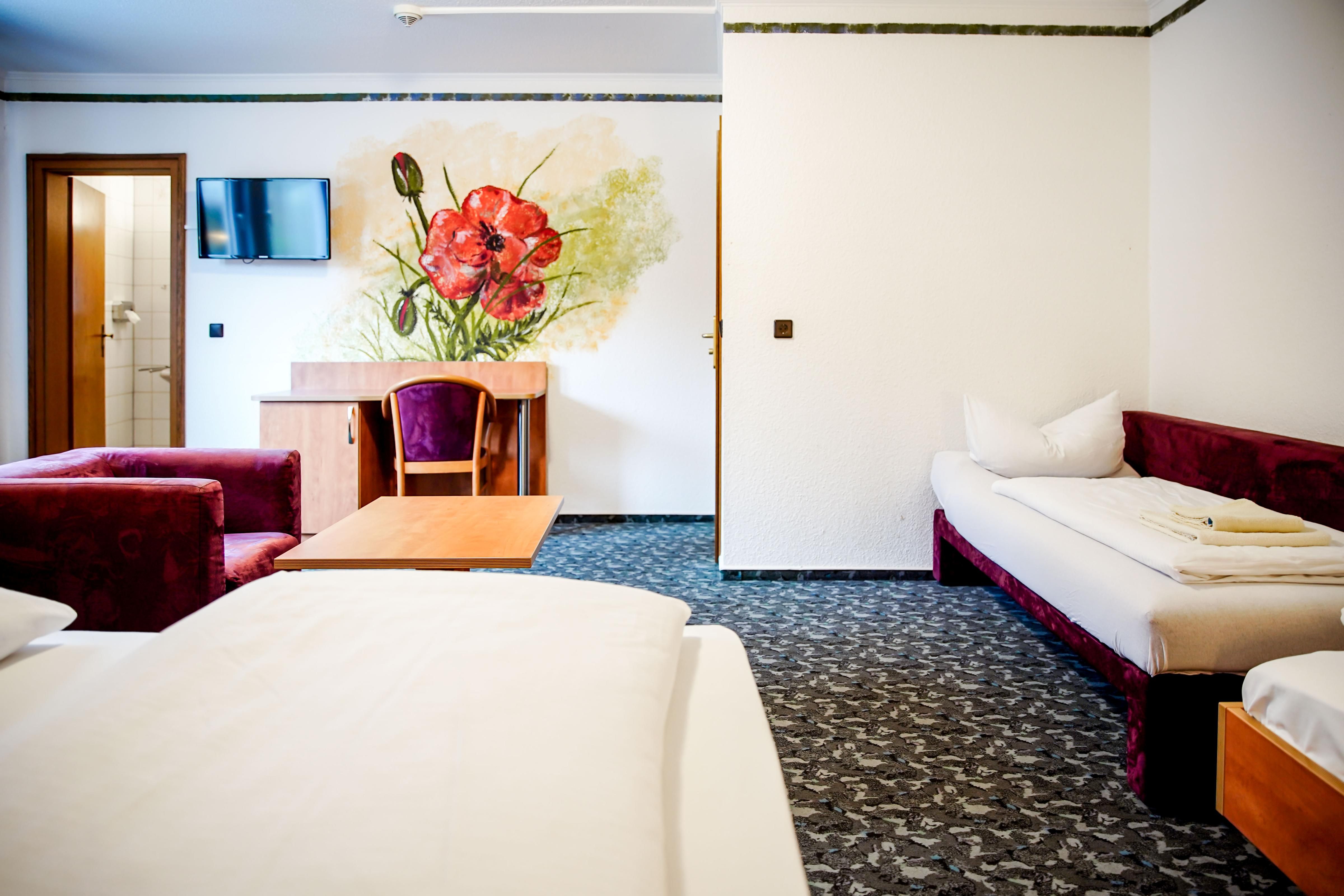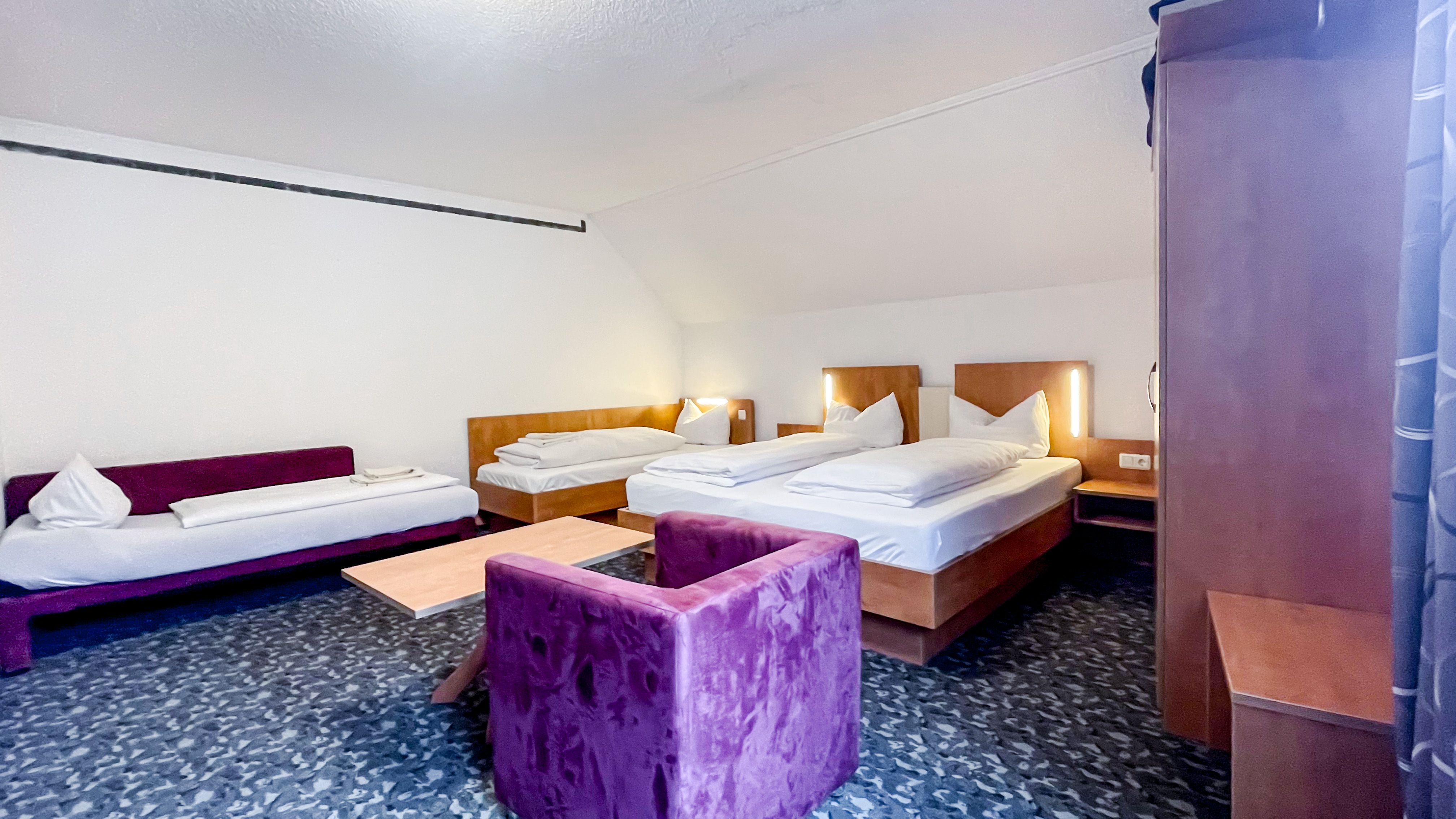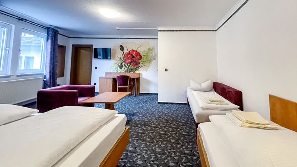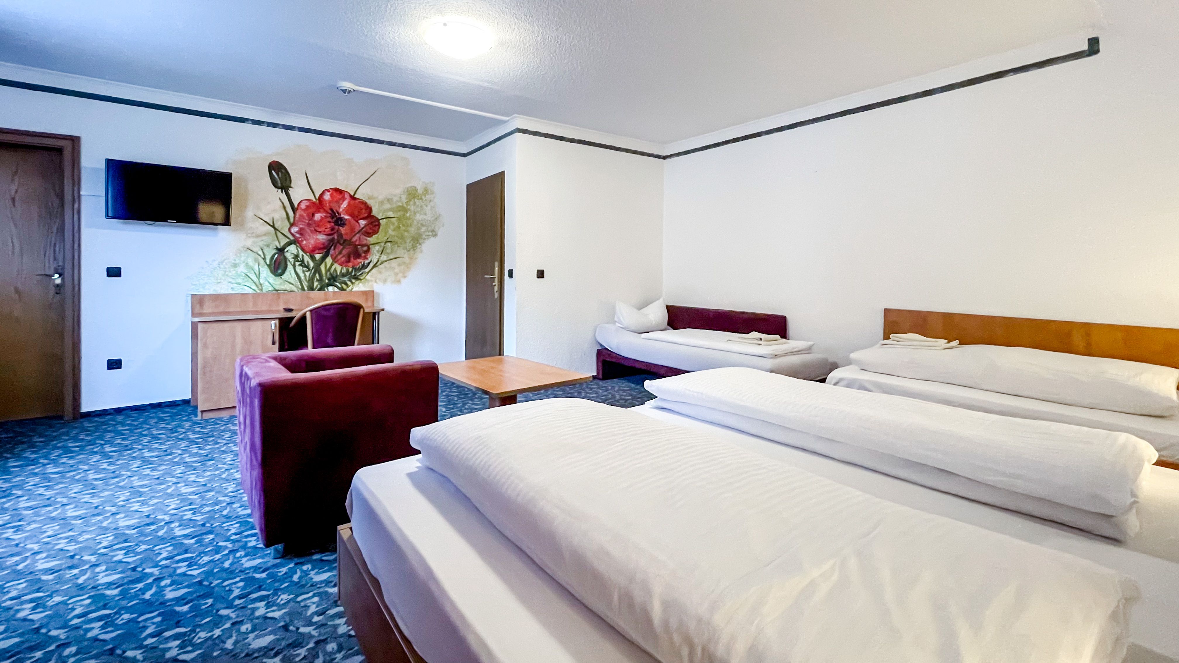 Herzlich willkommen in unserem charmanten Zimmer, das perfekt für zwei Personen geeignet ist. Mit einer großzügigen Fläche von 31 qm bietet es viel Raum zum Entspannen und Wohlfühlen. Ausgestattet mit einem bequemen Doppelbett, einem Einzelbett, einem Schlafsofa, sorgt es für eine erholsame Nachtruhe. Ein moderner Fernseher steht Ihnen zur Verfügung, um Ihre Lieblingssendungen zu genießen.