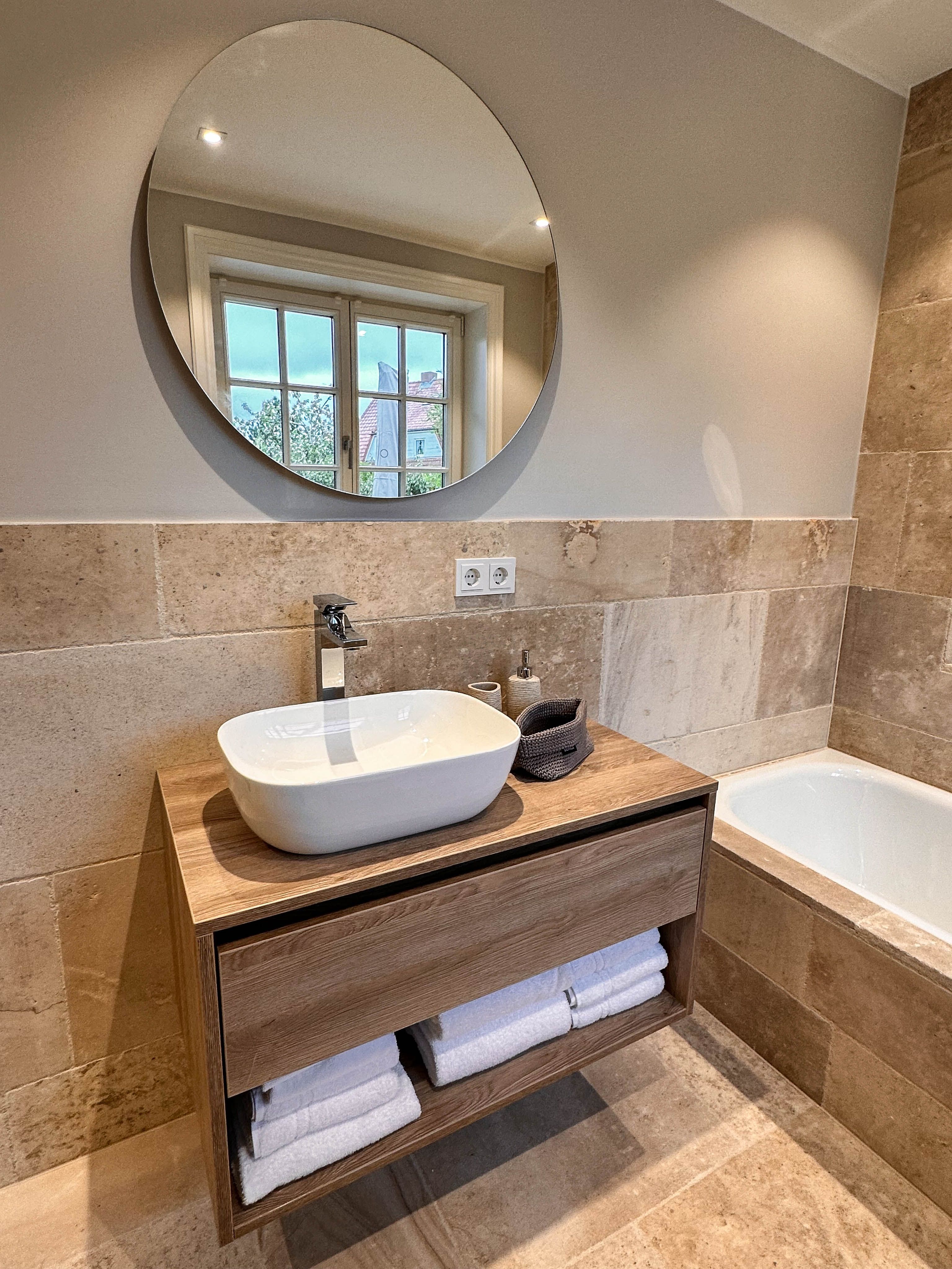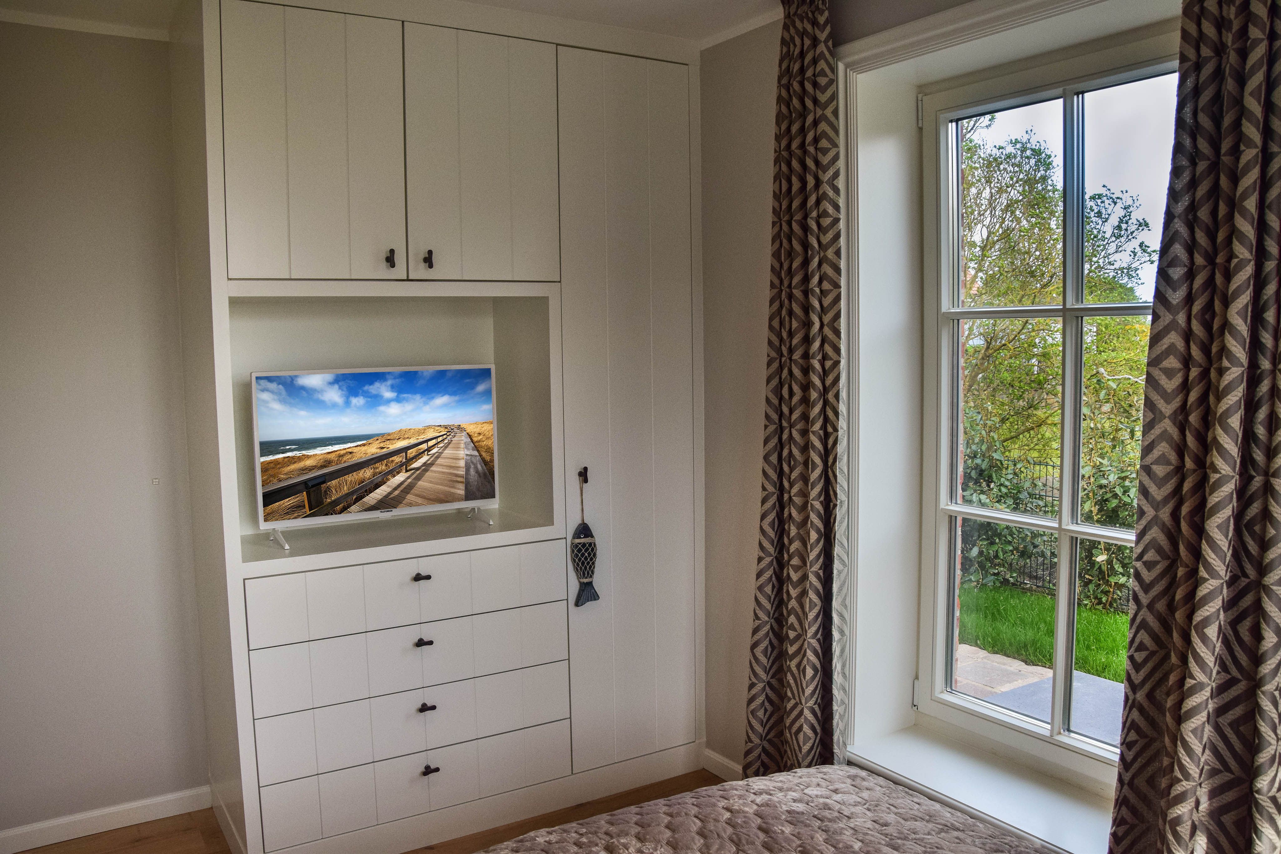 Neben der begünstigten, ruhigen Lage der Wohnung bieten der nahe Lister Hafen und Lister Markt eine hervorragende Infrastruktur – samt Gosch-Hauptquartier und anderer toller Gastronomien, wenn die Küche doch mal kalt bleiben soll. Was hingegen sicher nicht kalt bleibt, ist die Fasssauna im Garten: Was gibt es schließlich Schöneres, als nach einer langen Strandwanderung durch den Sand des Ellenbogens bei amtlich finnischen 90 Grad zu relaxen?