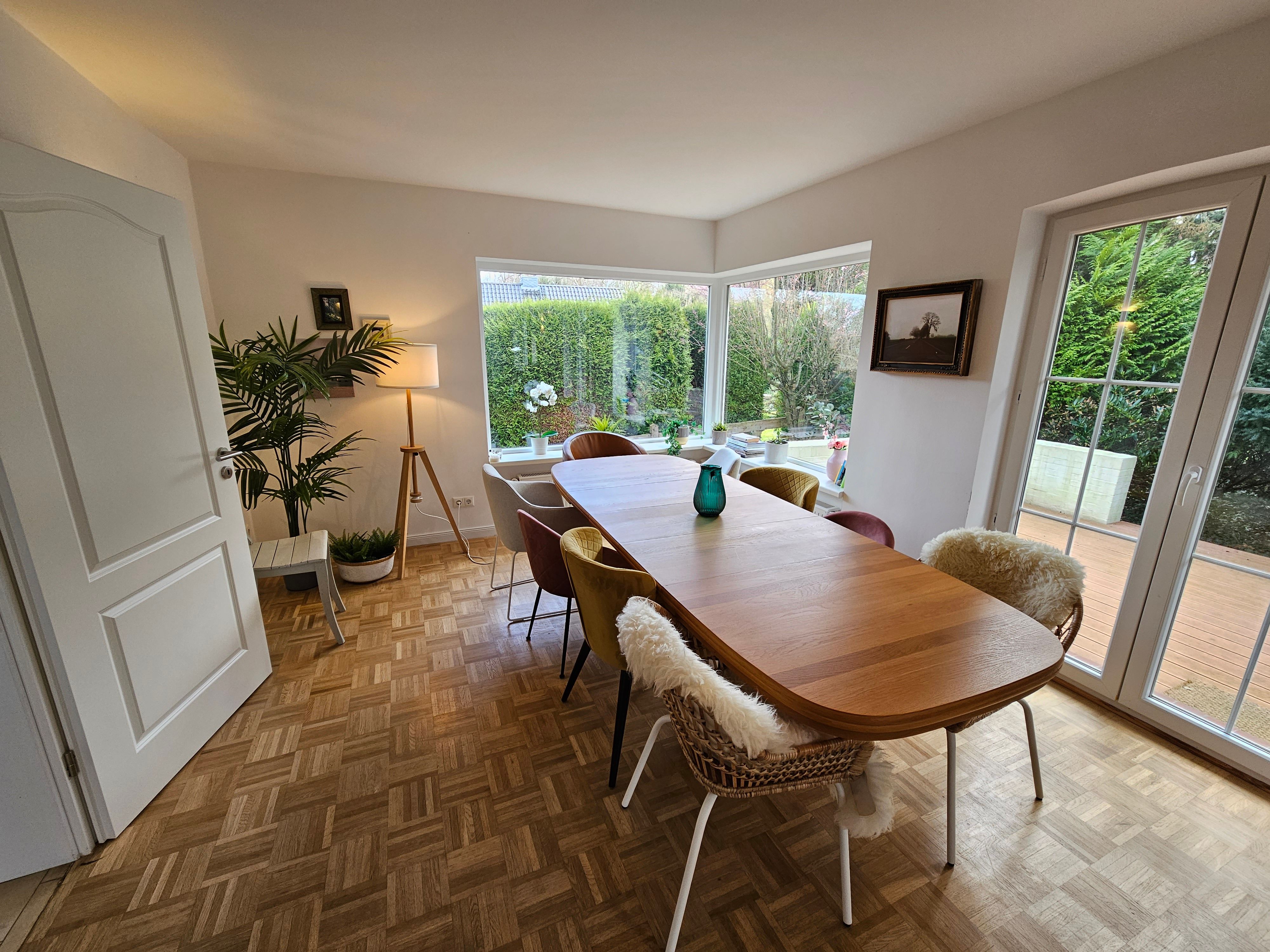 Die helle Küche mit zusätzlichem Sitzplatz für den morgendlichen Kaffee hat alles, was Sie für Ihre kulinarischen Ausflüge benötigen. Von hier sehen Sie auch in den schönen Vorgarten.