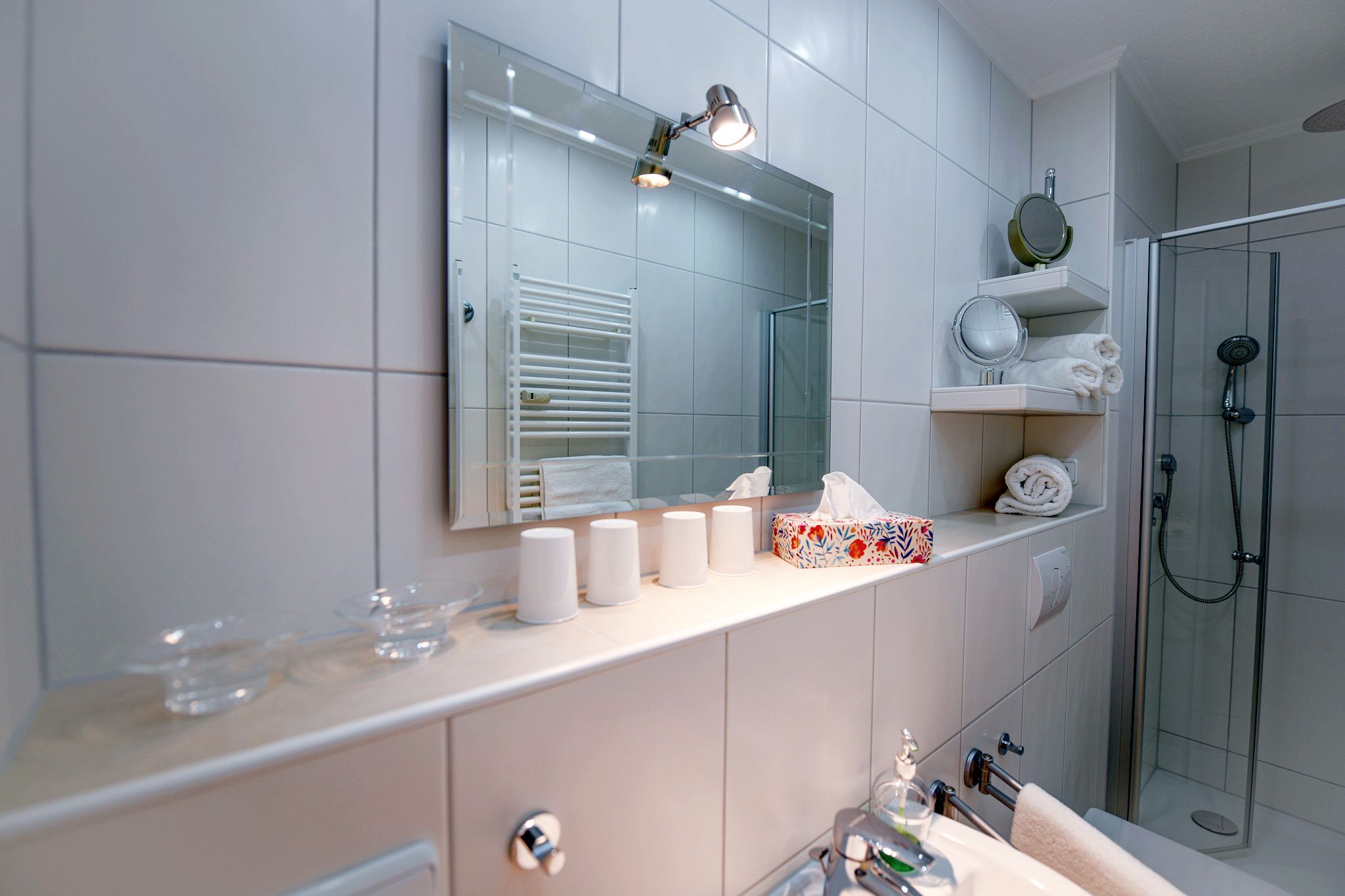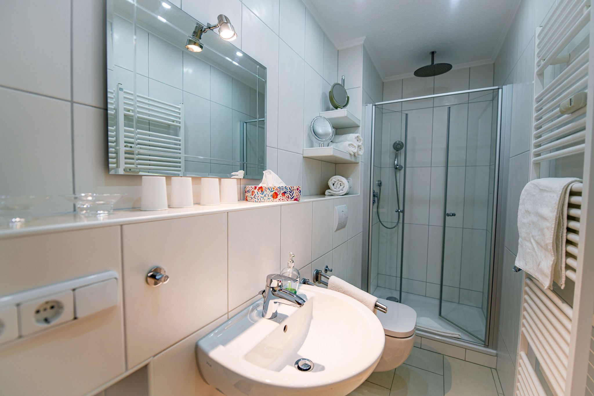 Die Wohnung verfügt über ein separates Schlafzimmer sowie einen Wohnschlafraum mit zwei Einzelbetten – ideal für Paare, Familien oder Freunde, die getrennte Schlafbereiche schätzen. Das Badezimmer mit Dusche/WC rundet den Komfort ab.