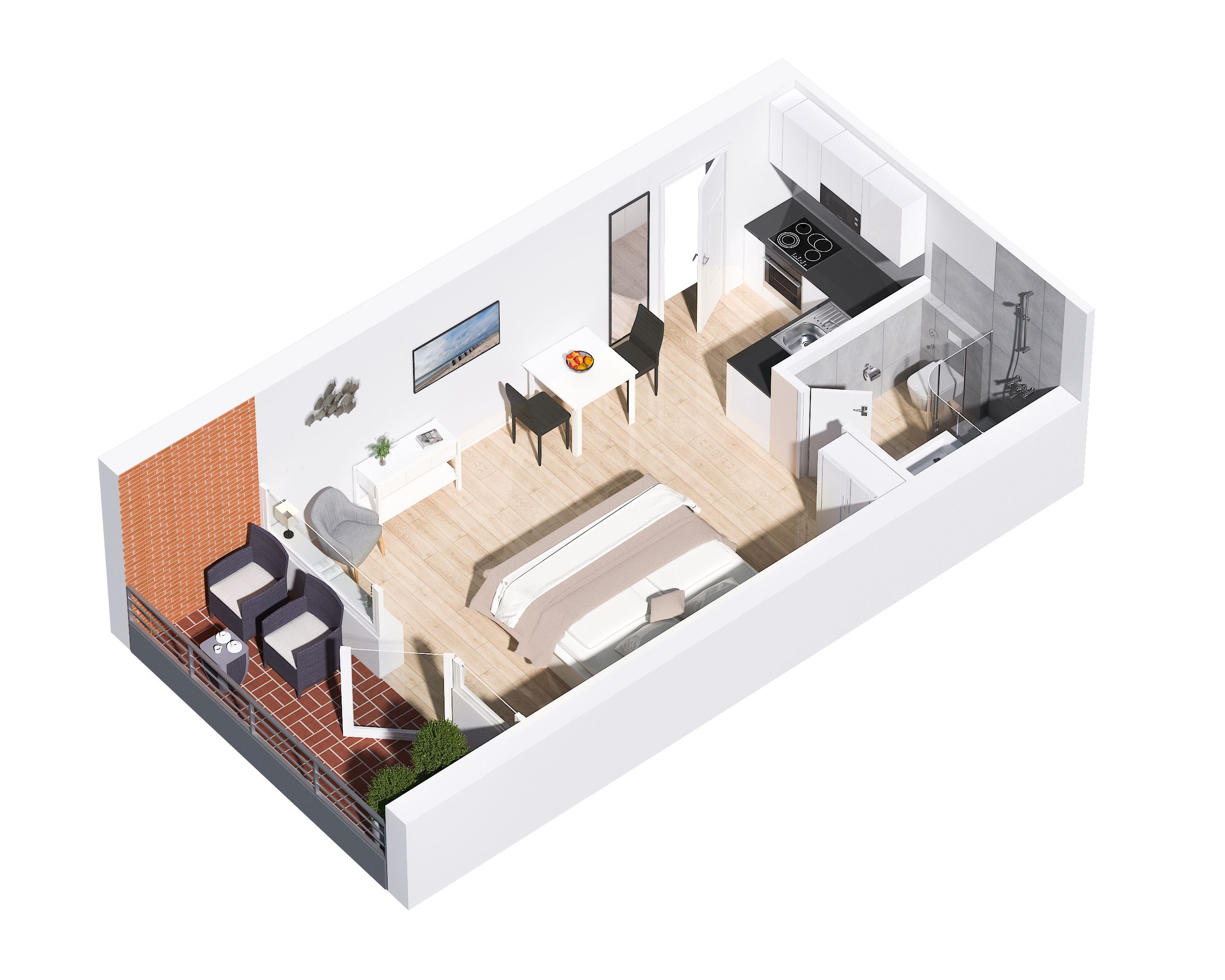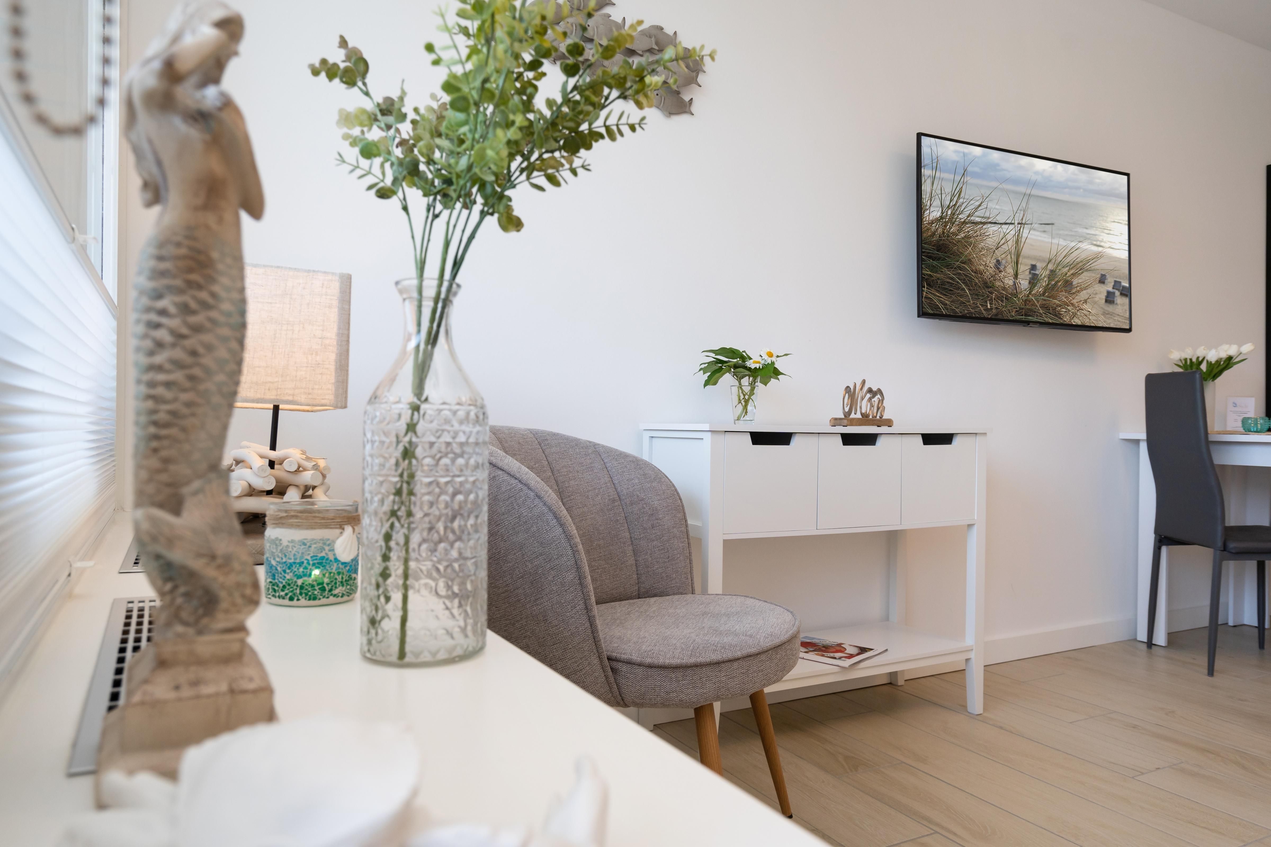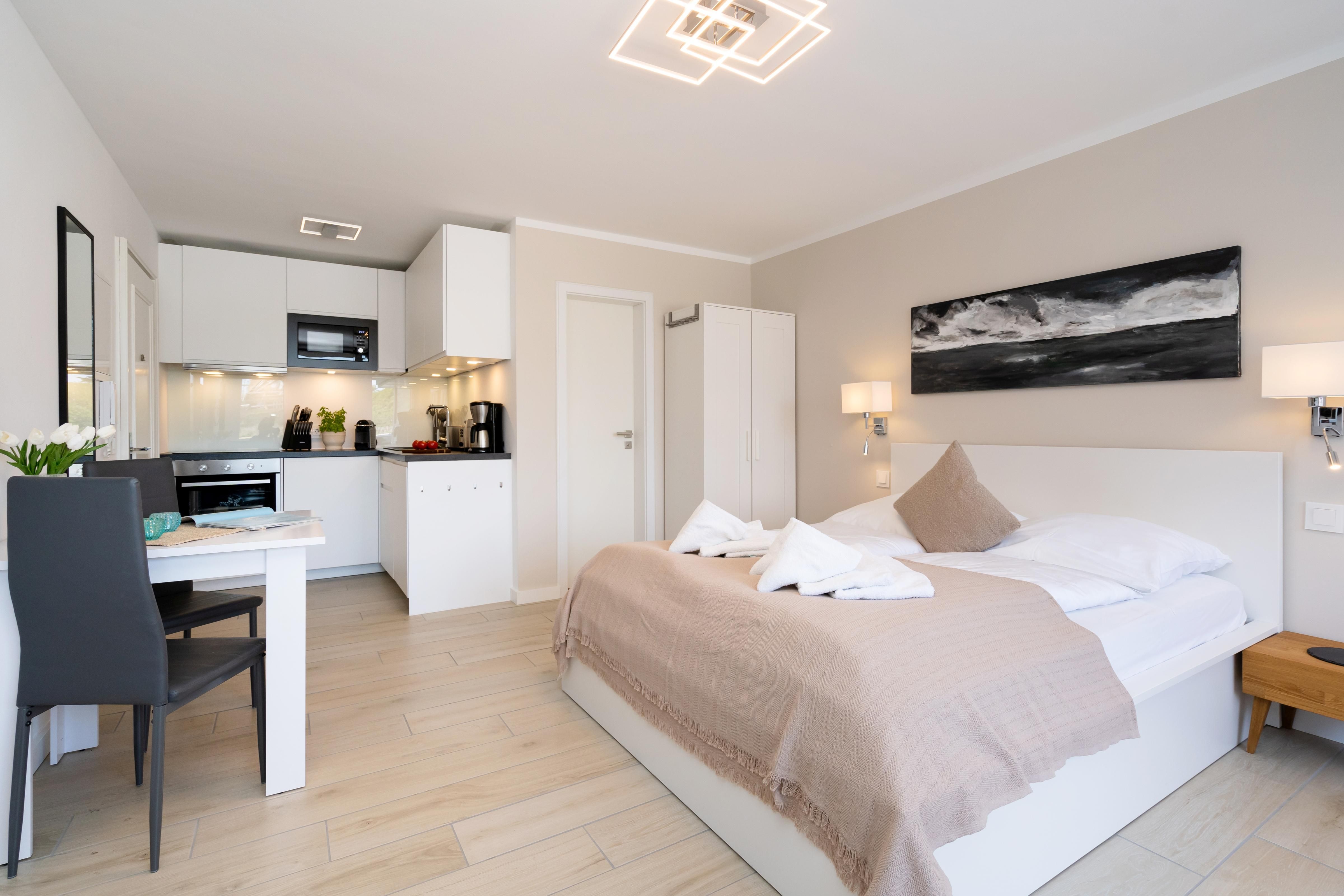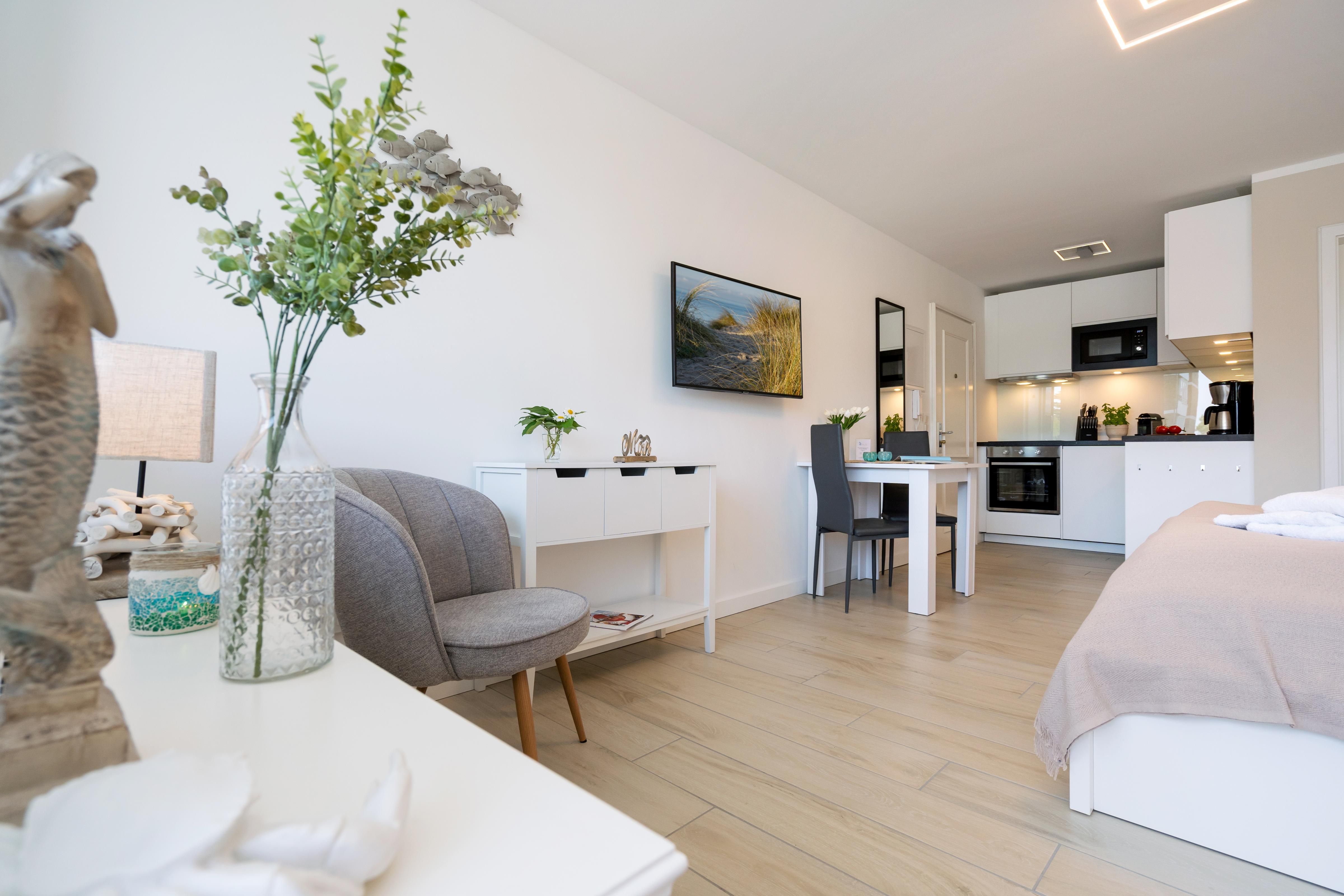 Das moderne 1-Zimmer App. "Strandwärts" für bis zu 2 Personen befindet sich im Hochparterre und zeichnet sich durch seine direkte Strandlage am Lister Watt aus. Der Wohn- und Schlafbereich inkl. Essecke bietet Ihnen eine Kombination aus hochwertiger Ausstattung und höchstem Komfort. Genießen Sie die Ruhe sowie den schönen Blick aufs Meer vom angrenzenden Balkon. Die Küchenzeile samt Geschirrspüler ist voll ausgestattet. Das Badezimmer verfügt über eine Dusche. Ein PKW-Stellplatz (maximale Fahrzeughöhe beträgt 190 cm) sowie WLAN stehen Ihnen kostenfrei zur Verfügung. Haustiere sind erlaubt. Der Fahrstuhl des Apartmenthauses ist über wenige Treppenstufen erreichbar.