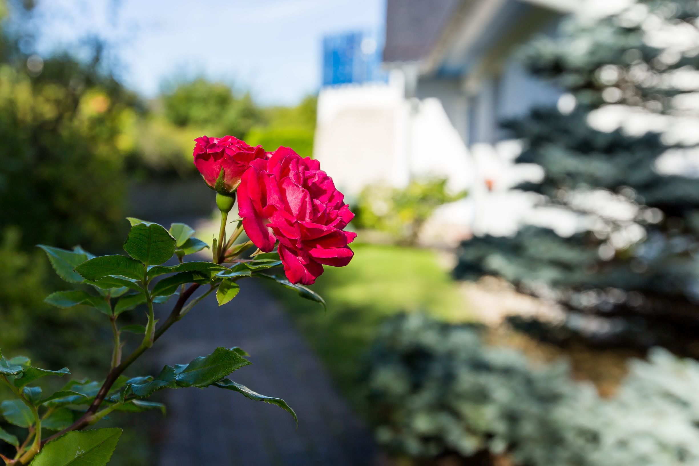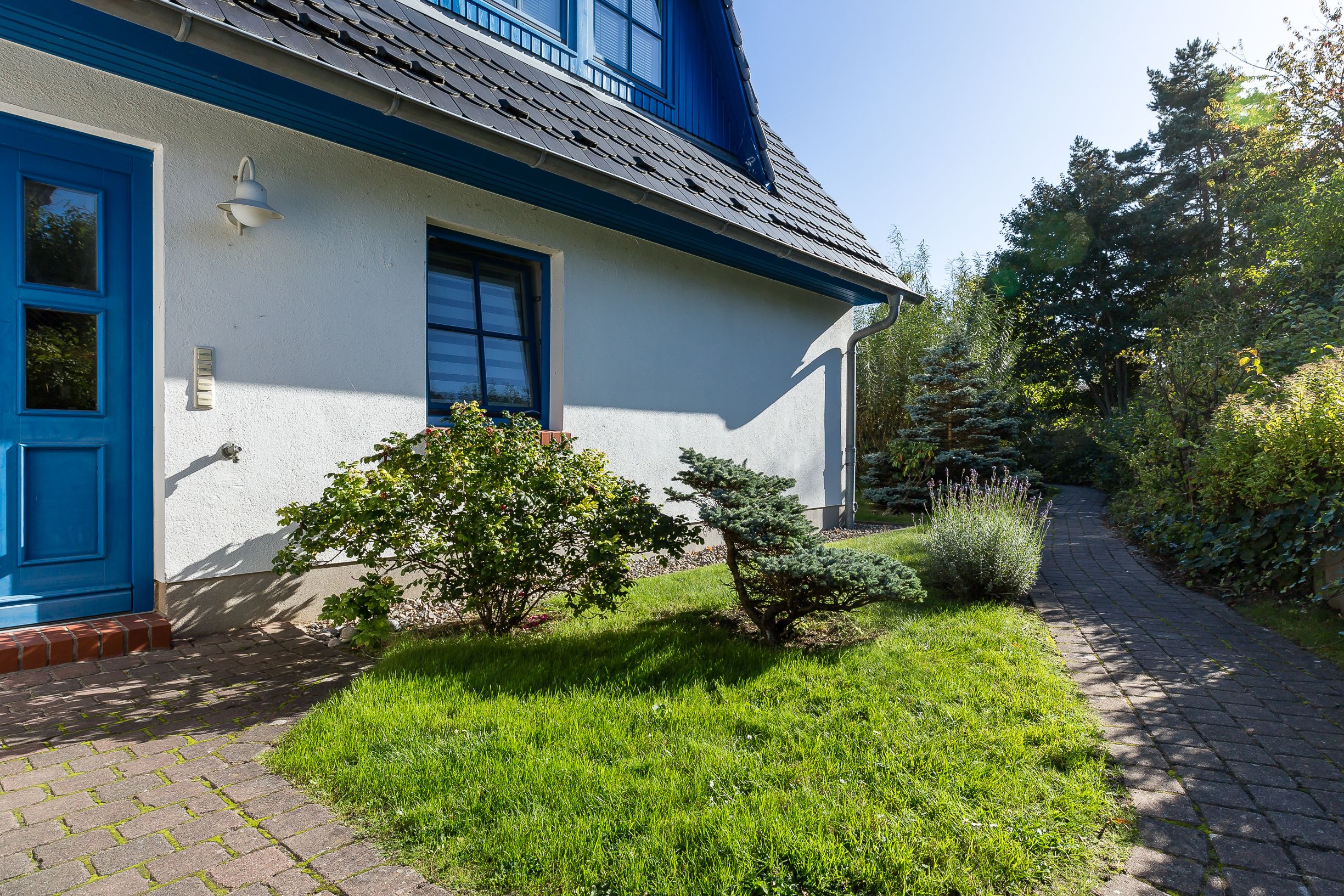 Das Haus steht auf einer Anhöhe und ist vom Parkplatz bis zum Haus über eine Treppe zu erreichen.