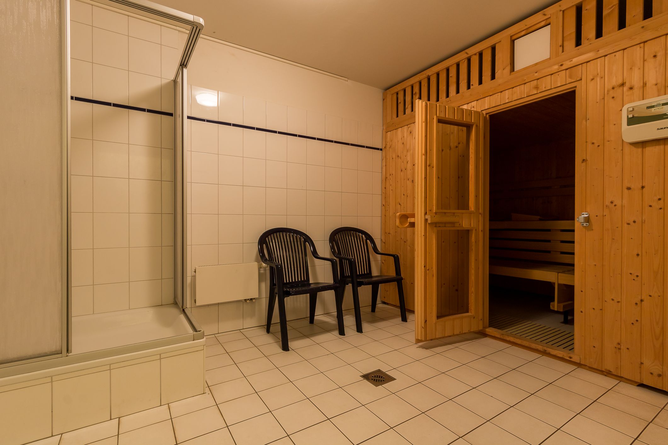 Die Sauna und das Solarium befinden sich im Haus und sind per Münzbetrieb nutzbar.
