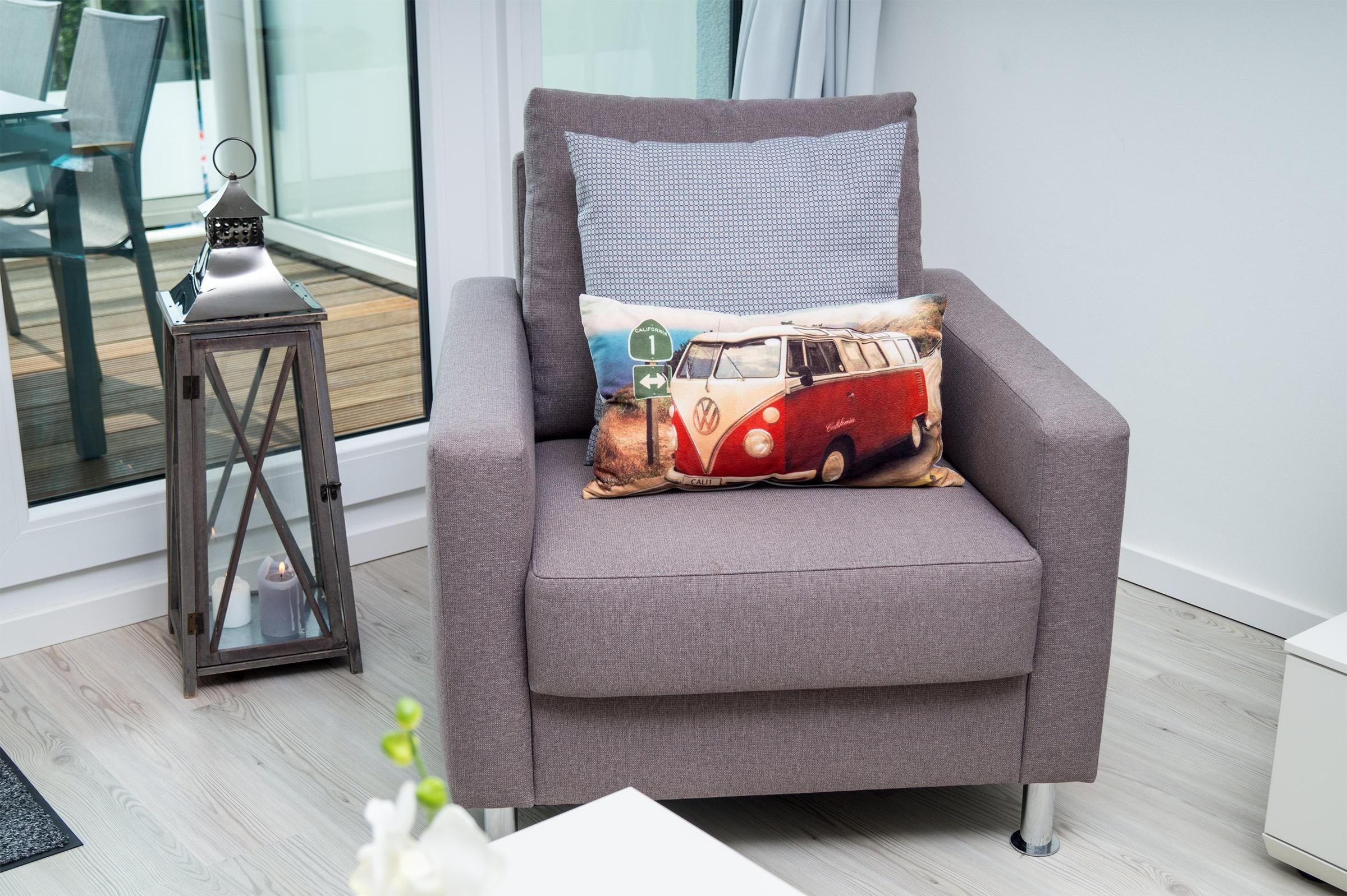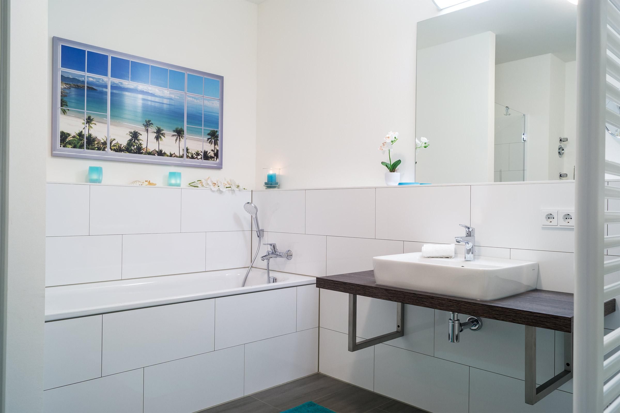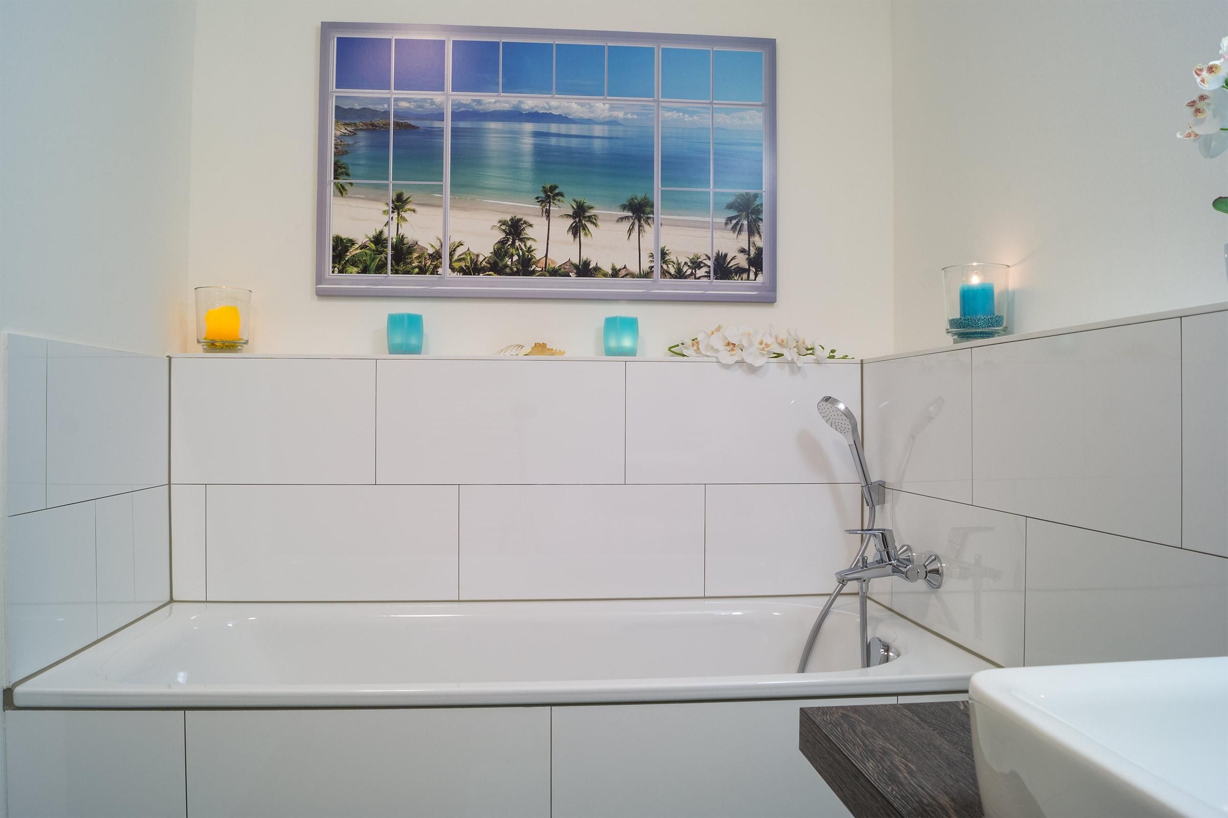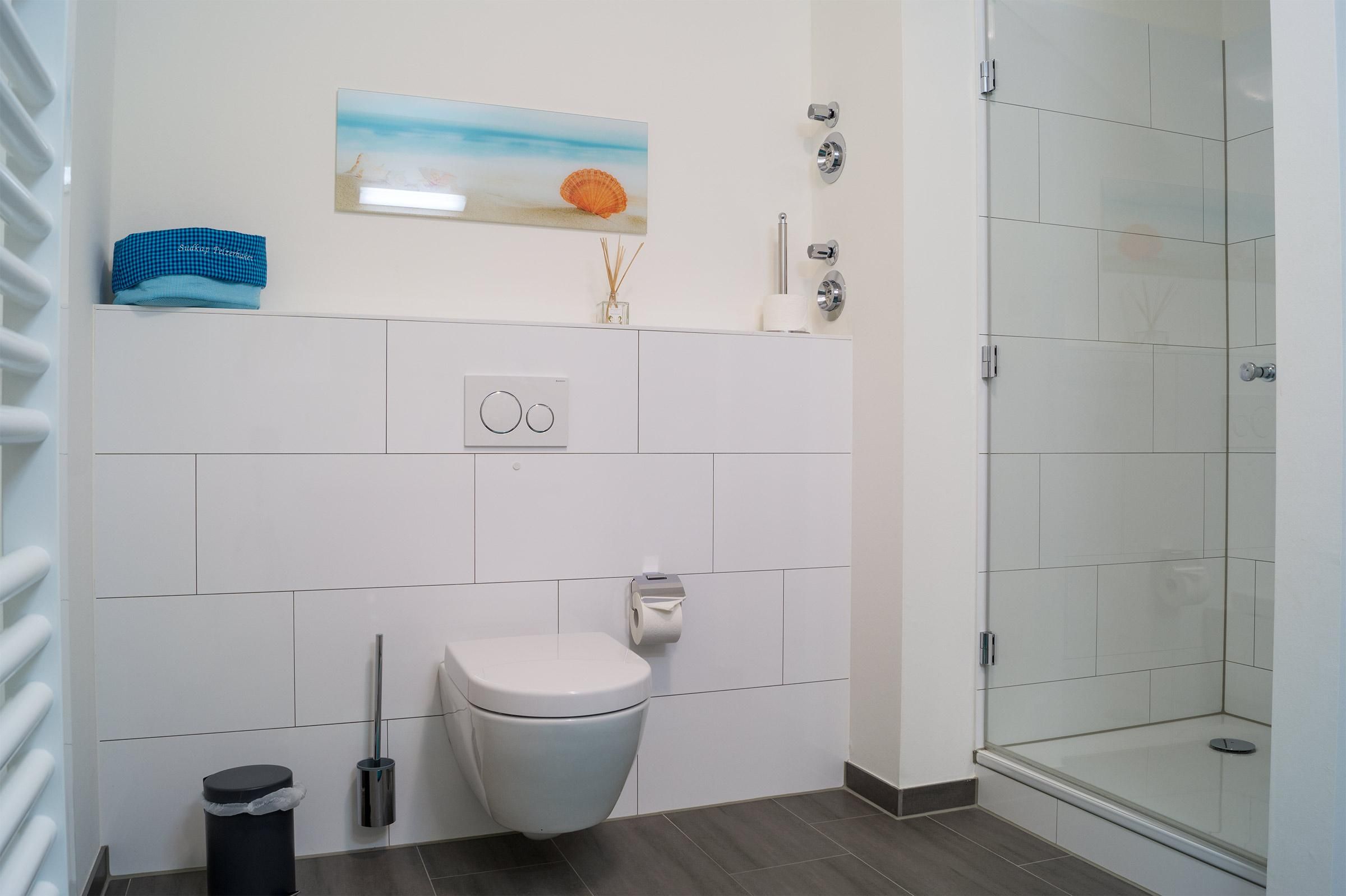 Der einladende Flur mit großem Spiegel und Garderobe führt Sie linkerhand in das schöne Badezimmer. Hier erwarten Sie eine Badewanne und eine Dusche, das Urlaubsgefühl stellt sich somit sofort ein! Zurück auf dem Flur führt Sie ihr Weg direkt in das Herzstück des Apartments, in den Wohnbereich. Eine offene Einbauküche, ein einladender Essbereich sowie eine gemütliche Sofaecke laden zum Verweilen ein! Genießen Sie den Blick aus dem Fenster, denn die Ostsee lacht Ihnen entgegen! Das Sofa bietet eine Schlaffunktion für zwei Personen. Über das Wohnzimmer gelangen Sie in den letzten Raum des Apartments, das Schlafzimmer. Hier stehen ein komfortables Boxspring-Doppelbett, ein geräumiger Kleiderschrank und ein Flachbildfernseher für Sie bereit. Auf den schönen Balkon gelangen Sie sowohl über das Wohnzimmer, als auch über das Schlafzimmer. Zur Ausstattung gehören zwei Sonnenliegen sowie ein Balkontisch mit vier Stühlen. Der einmalige Meerblick wird Sie begeistern!