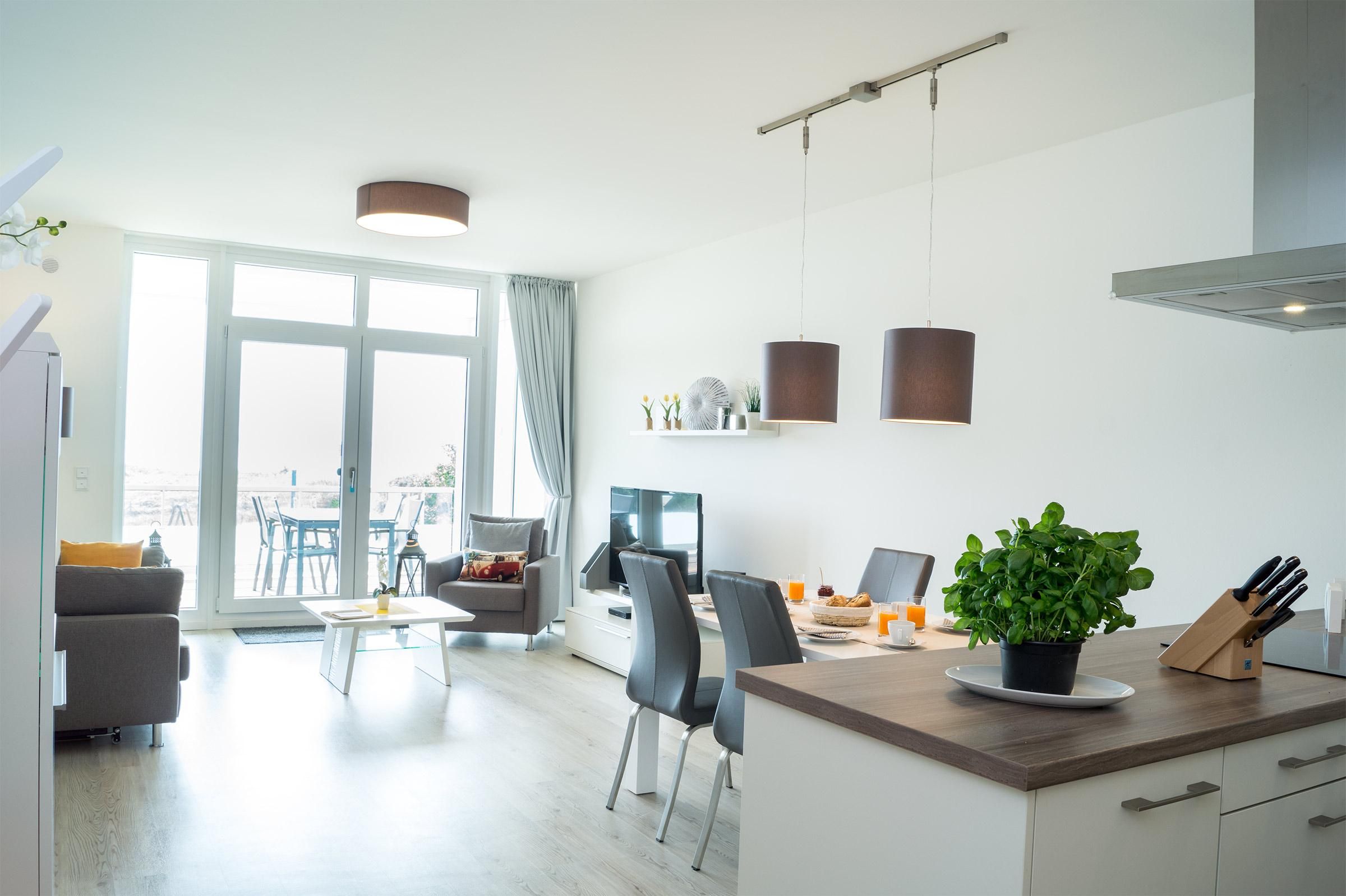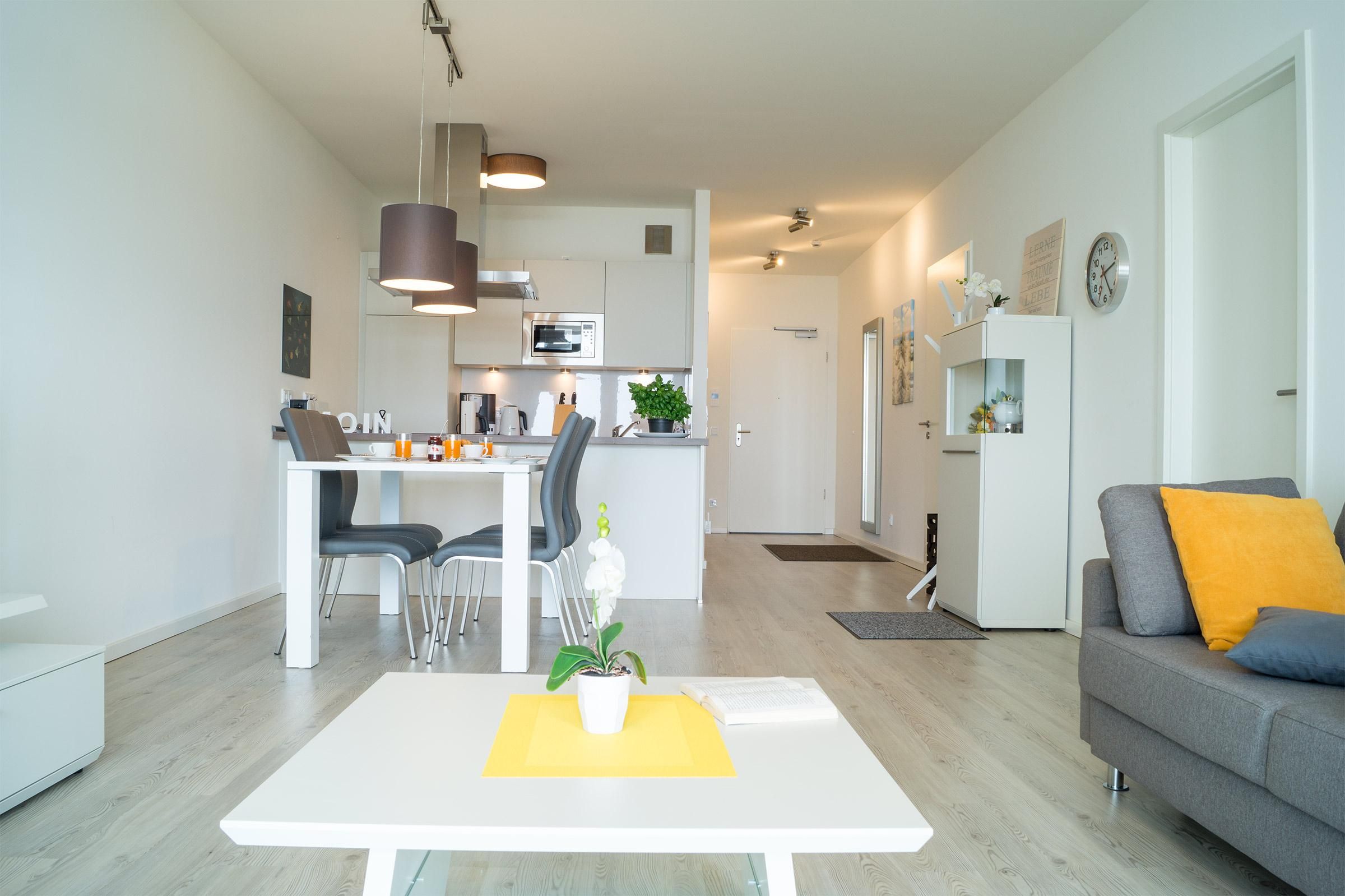 Das 70 m² große 2-Zimmer Apartment befindet sich im 1. Obergeschoss des Hauses F. Es ist perfekt für bis zu 4 Personen geeignet, auch ein Hund ist hier willkommen!
