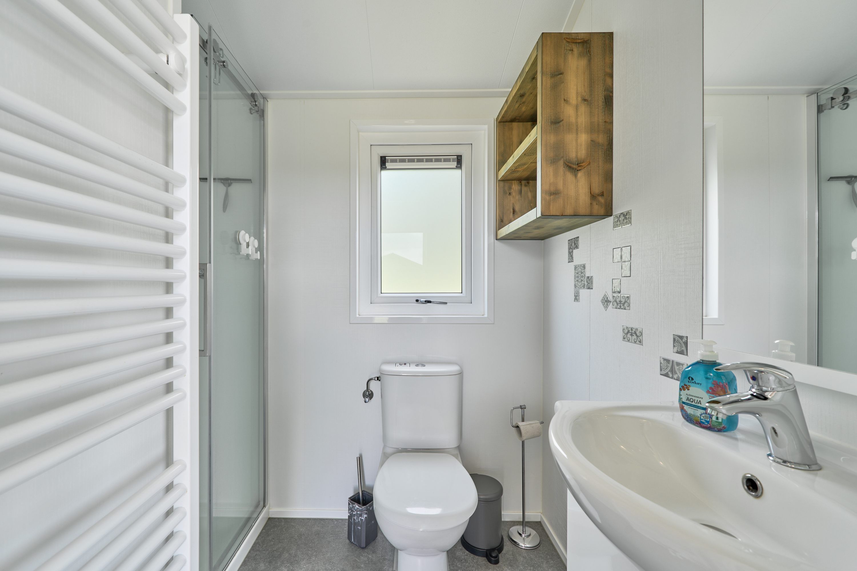 Im lichtdurchfluteten Wohn- und Essbereich erwartet Sie ein Fernseher. Dank kostenfreiem WLAN ist auch für Unterhaltung und Konnektivität gesorgt. Die Fenster sind mit Sichtschutz ausgestattet; so genießen Sie Privatsphäre während Ihres Aufenthaltes. Das moderne Badezimmer bietet Ihnen Dusche, Waschbecken, WC, Spiegel und stellt Handtücher sowie Bettwäsche bereit.
