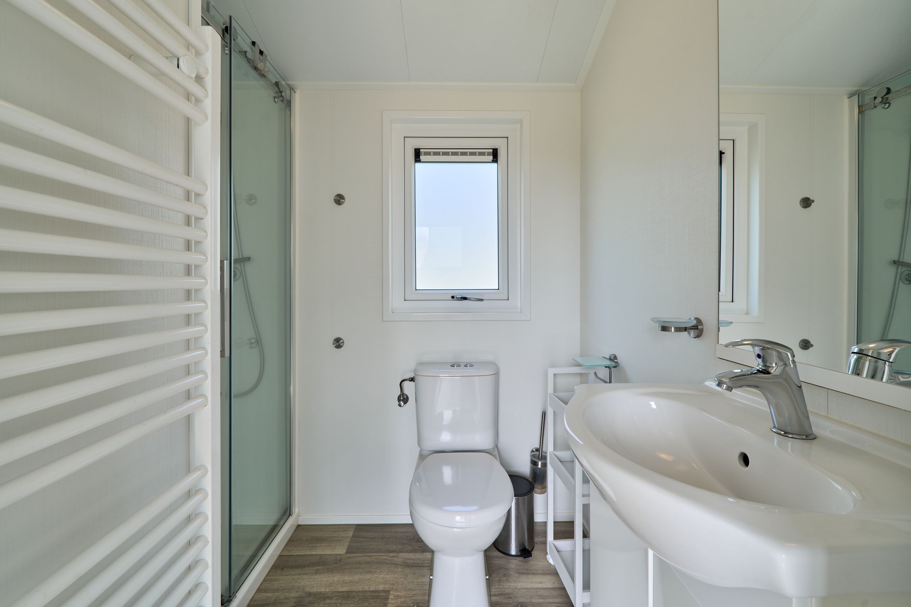 Das Badezimmer ist mit Dusche, Waschbecken, WC und Spiegel versehen und überzeugt durch Funktionalität. Handtücher und Bettwäsche werden bereitgestellt, ebenso wie Geschirrhandtücher. Alle Fenster sind mit Sichtschutz ausgestattet, was für angenehme Privatsphäre sorgt. Das Haus wird mittels moderner Gasheizung beheizt.