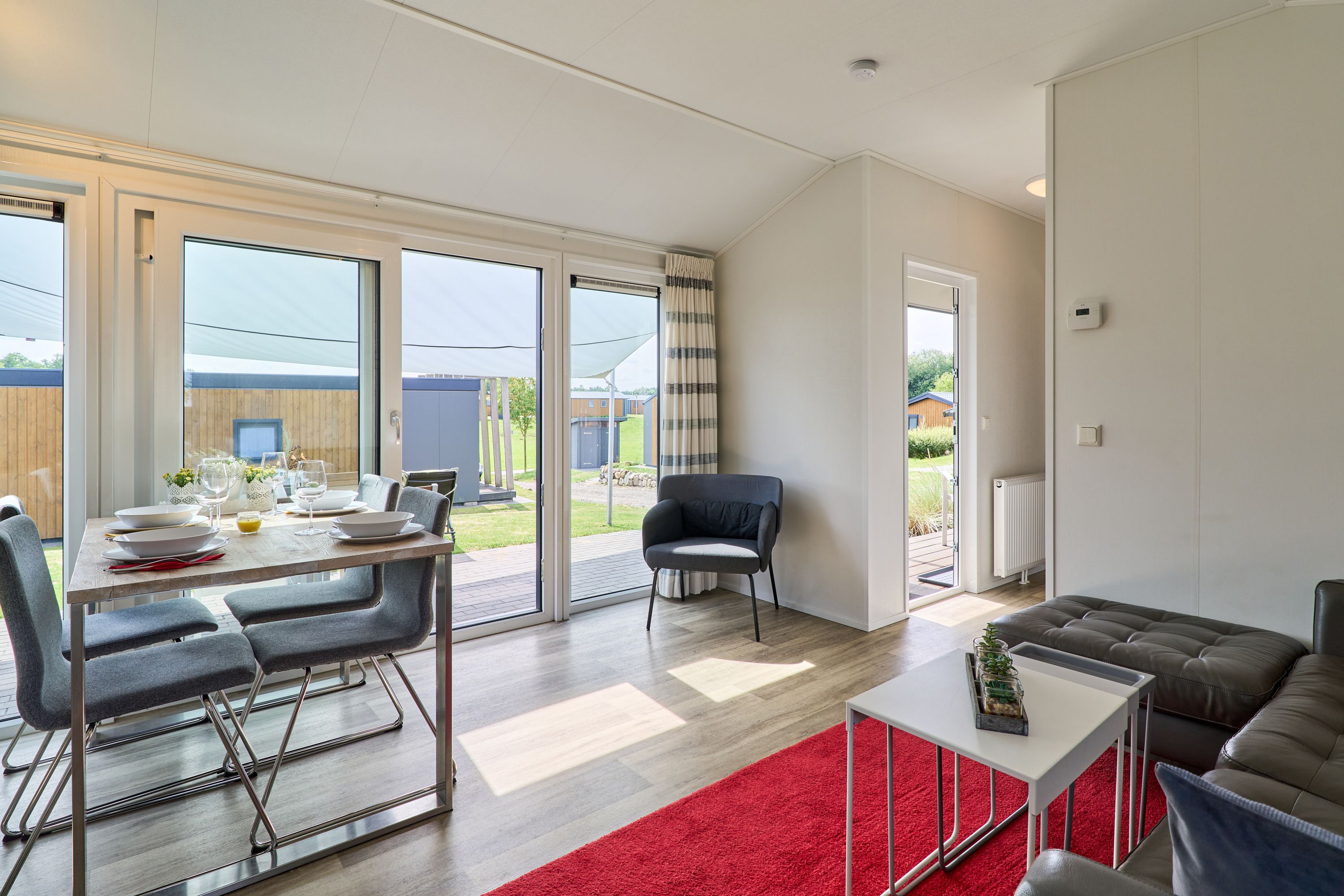 Die Ferienanlage ist böllerfrei, was besonders für Familien mit Kindern oder ruhesuchende Gäste von Vorteil ist. Dank des Brötchenservices können Sie sich morgens frische Backwaren direkt vor Ort sichern. In fußläufiger Entfernung (rund 500 Meter) befinden sich zudem gastronomische Angebote, sodass Sie auch regionaltypische Spezialitäten genießen können.