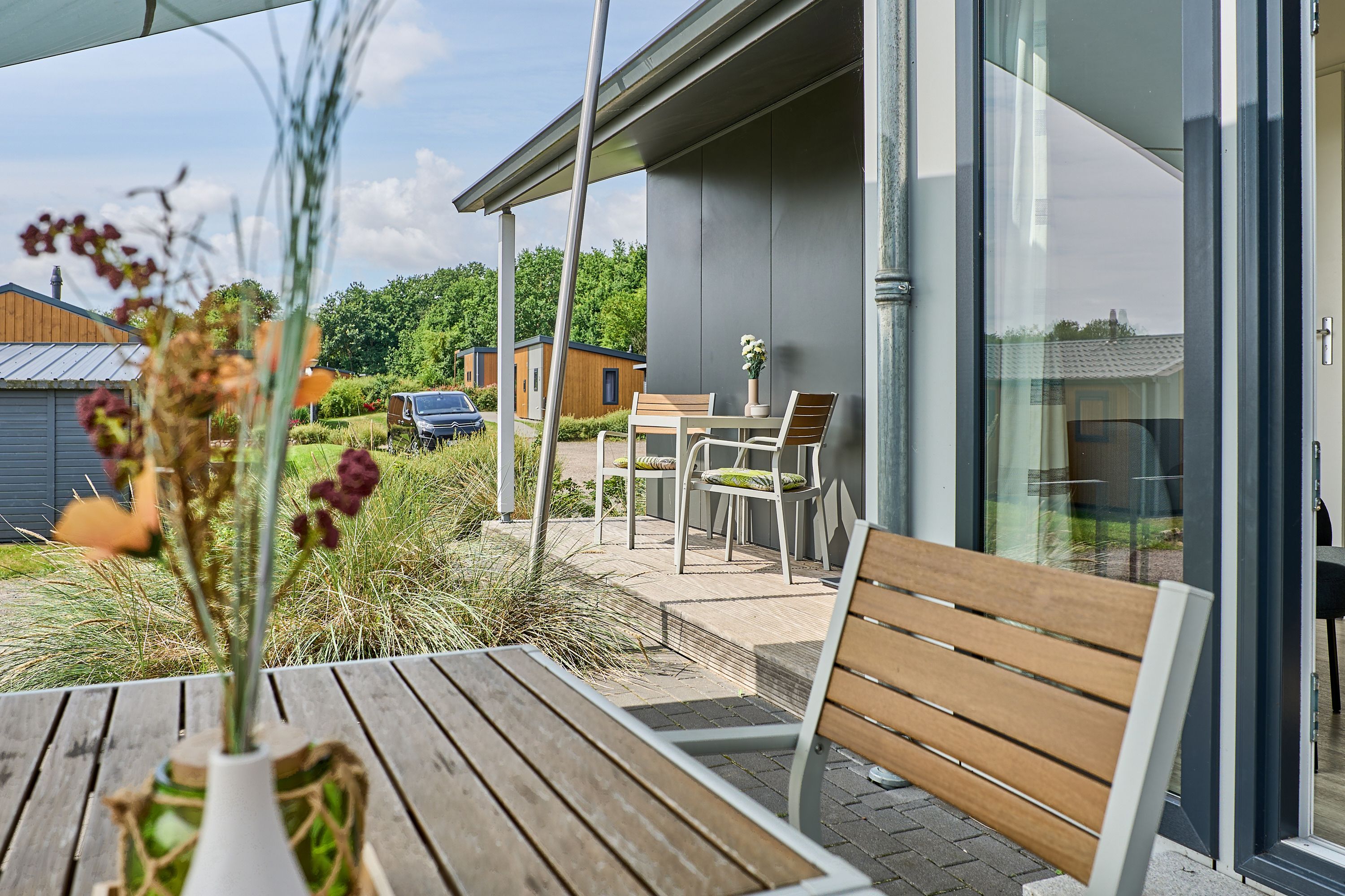 Die sonnige Terrasse mit Gartenmöbeln lädt dazu ein, den Tag entspannt an der frischen Luft ausklingen zu lassen – sei es beim Frühstück oder am Abend nach einem erlebnisreichen Tag. Ein Parkplatz ist kostenfrei vorhanden; für Gäste mit Elektroauto steht zudem eine Ladestation zur Verfügung.