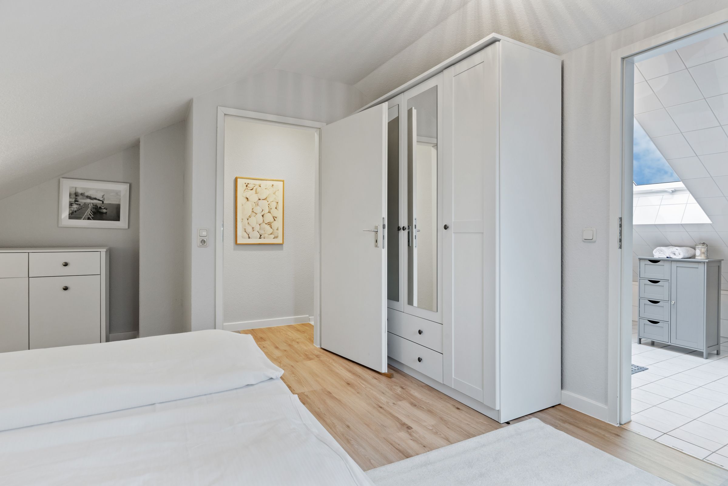 Die helle und freundliche Nichtraucher-Ferienunterkunft verfügt über kostenfreies WLAN, ist mit Laminatböden ausgestattet und beinhaltet zwei separate Schlafzimmer. Eines der Schlafzimmer befindet sich im Obergeschoss mit angeschlossenem Badezimmer und beinhaltet ein Doppelbett (1,80 x 2,00 m), das zweite Schlafzimmer verfügt über ein Etagenbett und ein Einzelbett und liegt im Erdgeschoss. Der behagliche Wohnbereich ist mit Schlafcouch und Kaminofen (Kaminholz ist nicht inbegriffen) ausgestattet. Auf der westlich gelegenen Terrasse - ausgestattet mit Gartenmöbeln für 6 Personen, Sonnenliegen und Sonnenschirm - genießt ihr den Blick in die Natur und das Meeresklima der nahen Ostsee.