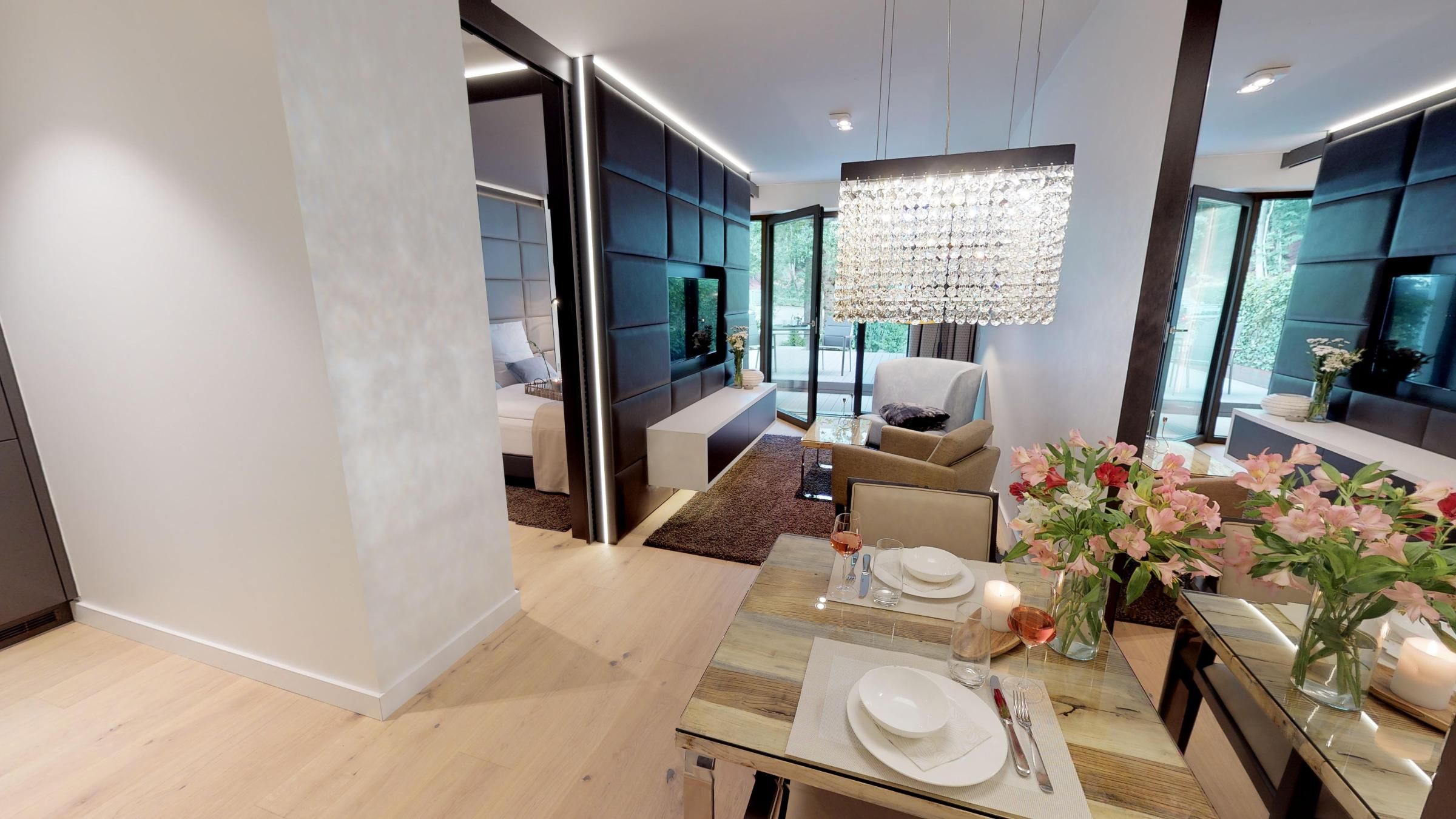 Erleben Sie eine virtuelle Reise durch das Apartment mit dem 360° Rundgang!