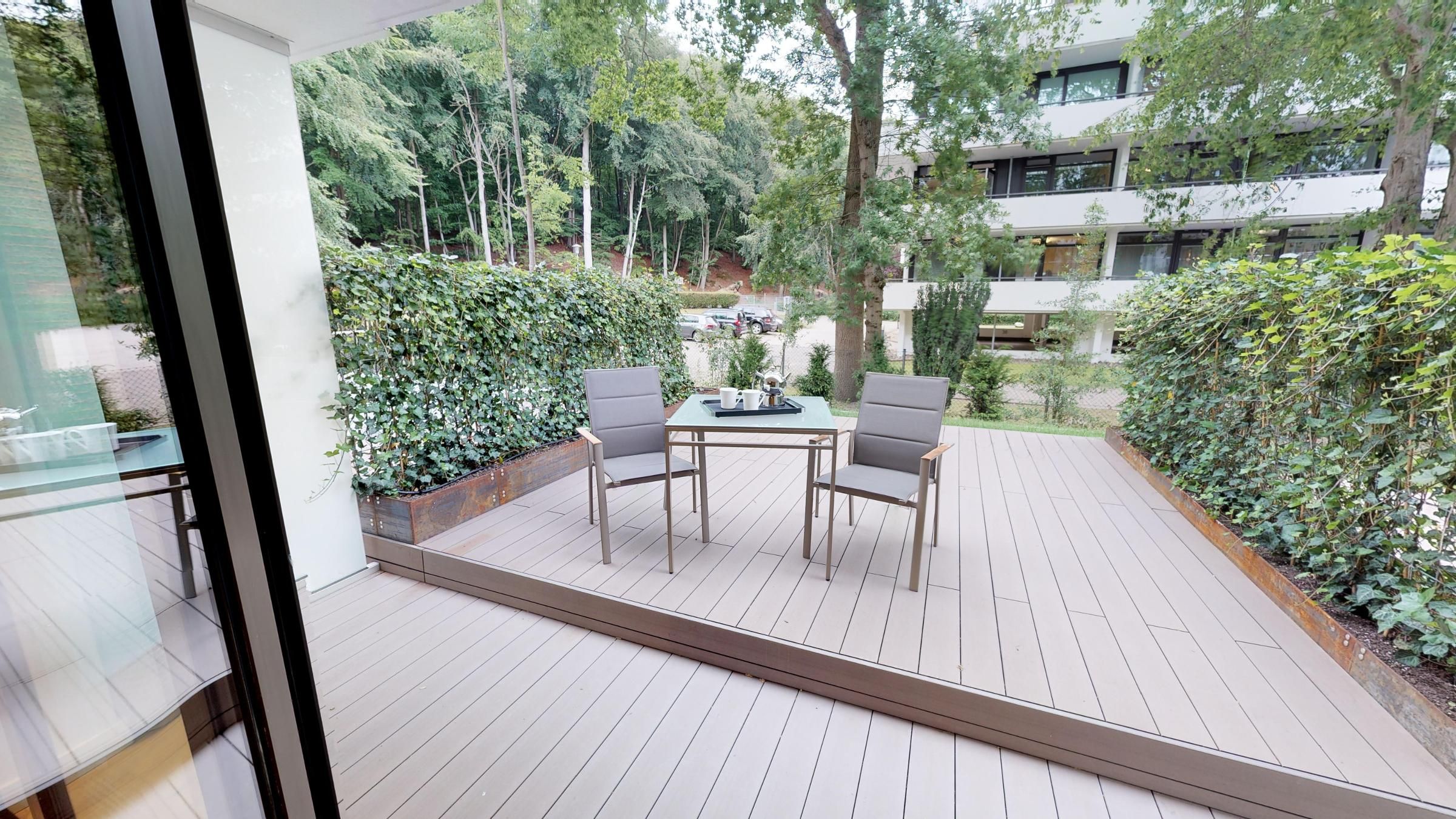 Ein Highlight des Apartments ist die möblierte Terrasse mit Sonnenliegen, die entspannte Stunden an der frischen Luft ermöglicht! Zur Wohnung gehört ein Außenstellplatz.