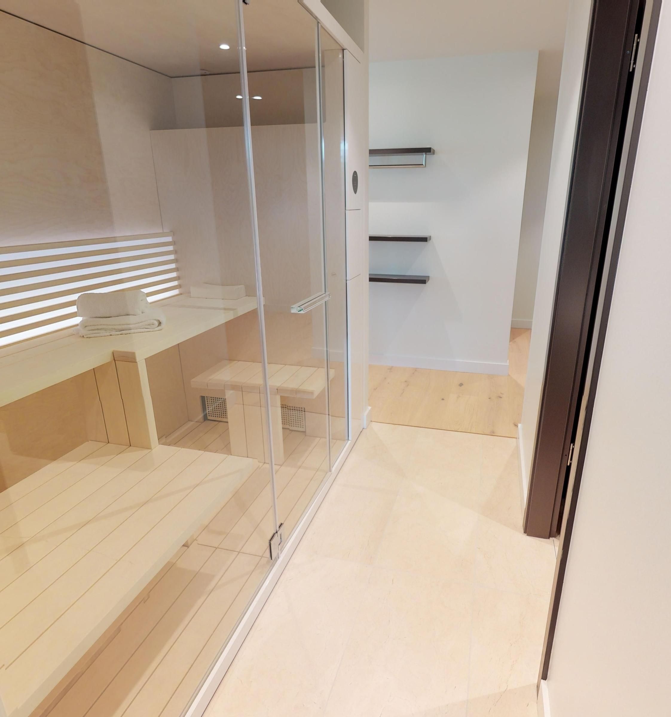 Highlights des Apartments sind die eigene Sauna (2,37m x 1,19m) sowie die große Terrasse, die entspannte Stunden an der frischen Luft ermöglicht!