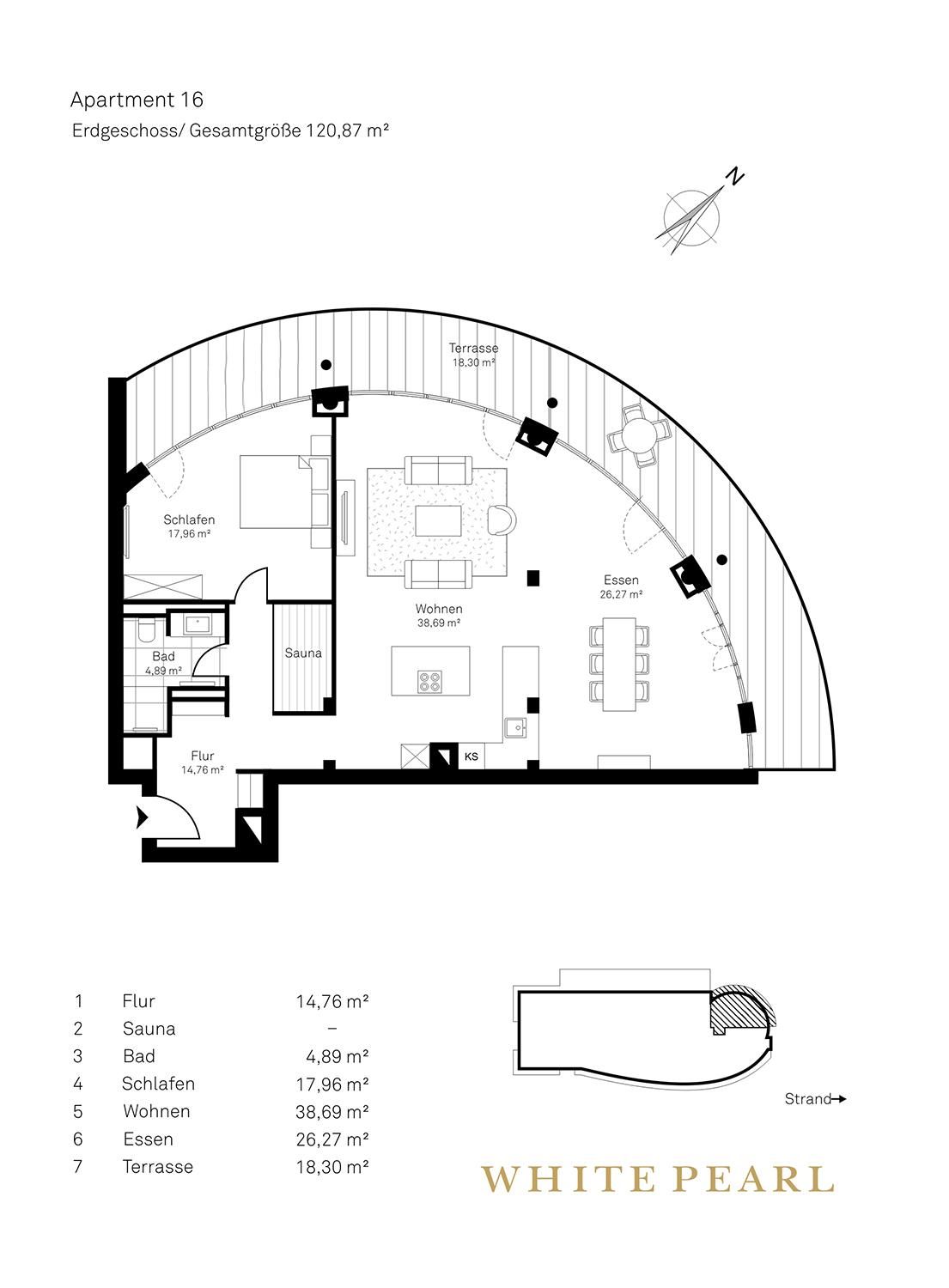 Das großzügige Luxusapartment 0.16 befindet sich im Erdgeschoss des "White Pearl" und bietet Platz für 4 Personen auf 121 m² mit einem separaten Schlafzimmer und einer Schlafcouch im Wohnbereich. Auch Ihr Hund ist willkommen!