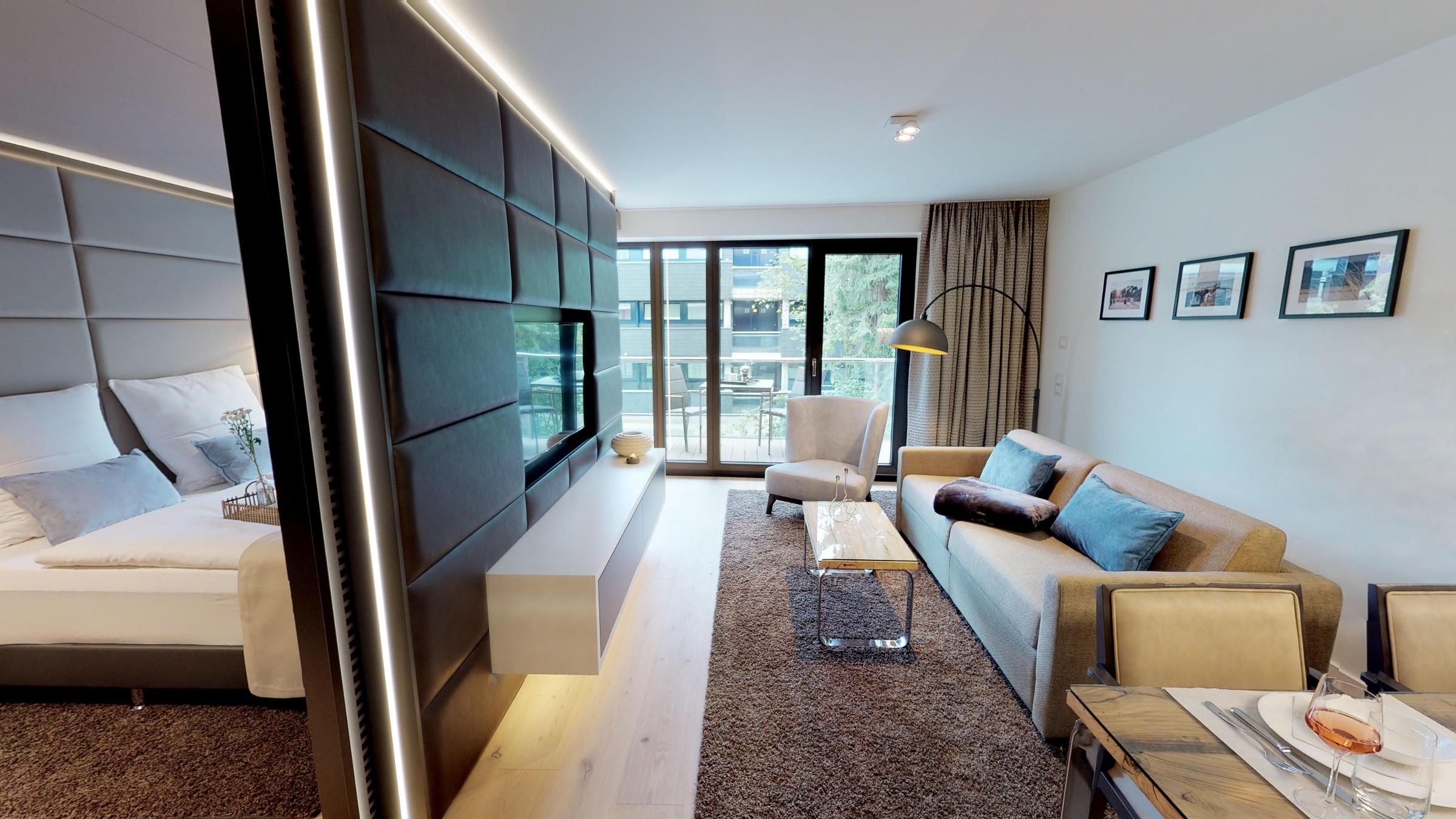 Erleben Sie eine virtuelle Reise durch das Apartment mit dem 360° Rundgang!