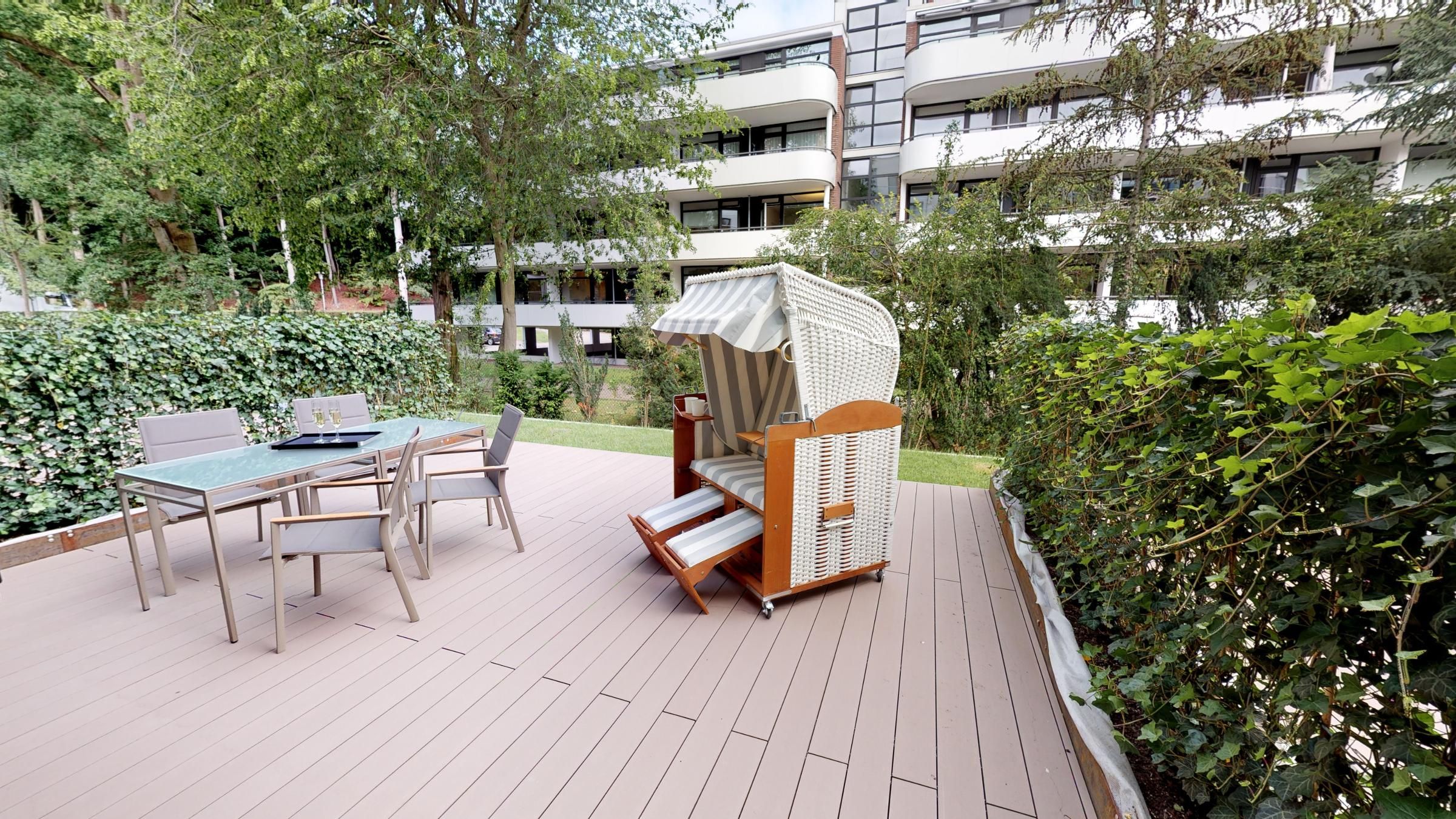 Die Highlights des Apartments sind die eigene Sauna (2,37m x 1,19m) sowie die möblierte Terrasse mit einem Strandkorb, die entspannte Stunden an der Meeresluft ermöglicht! Zur Wohnung gehört ein Außenstellplatz.
