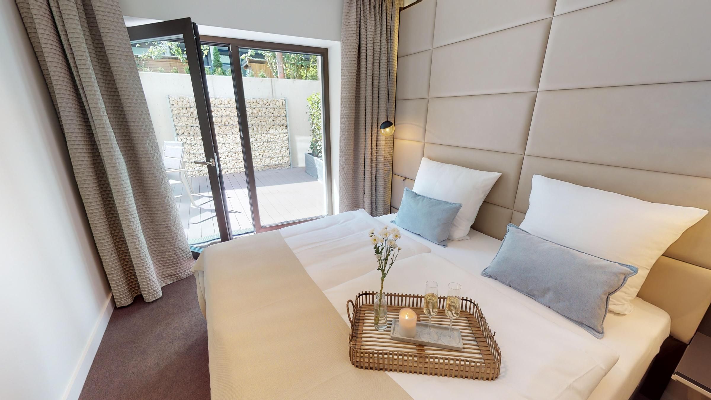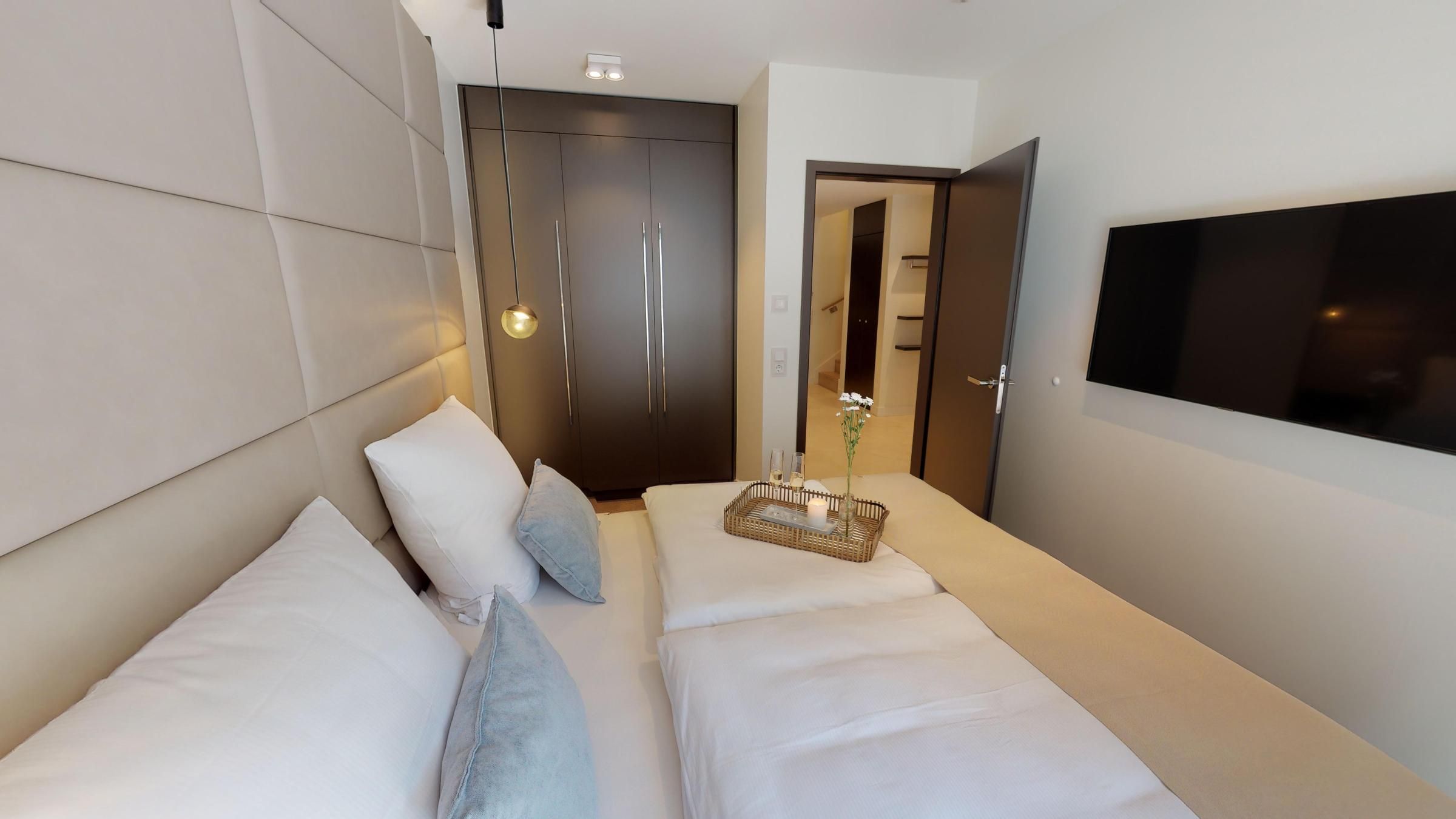 Die großzügige Luxussuite 0.04 im Erdgeschoss des "White Pearl" erstreckt sich über zwei Etagen und bietet Platz für 5 Personen auf 106 m² - auch Ihr Hund ist willkommen.