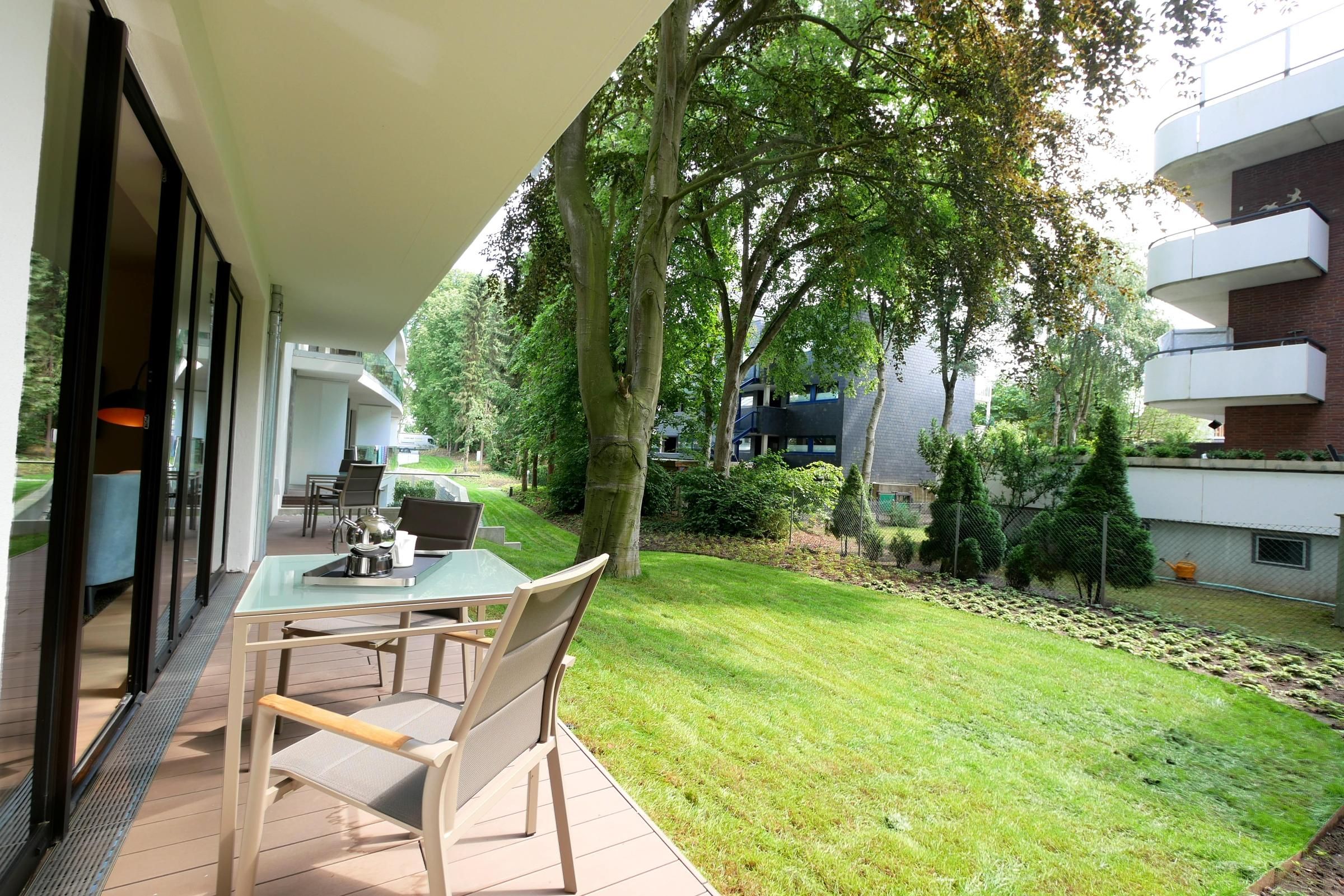 Ein Highlight der Wohnung ist die umlaufende Terrasse, die von morgens bis zum Nachmittag von der Sonne beschienene, entspannte Tage im Strandkorb oder eine leckere Mahlzeit an der frischen Luft ermöglicht.