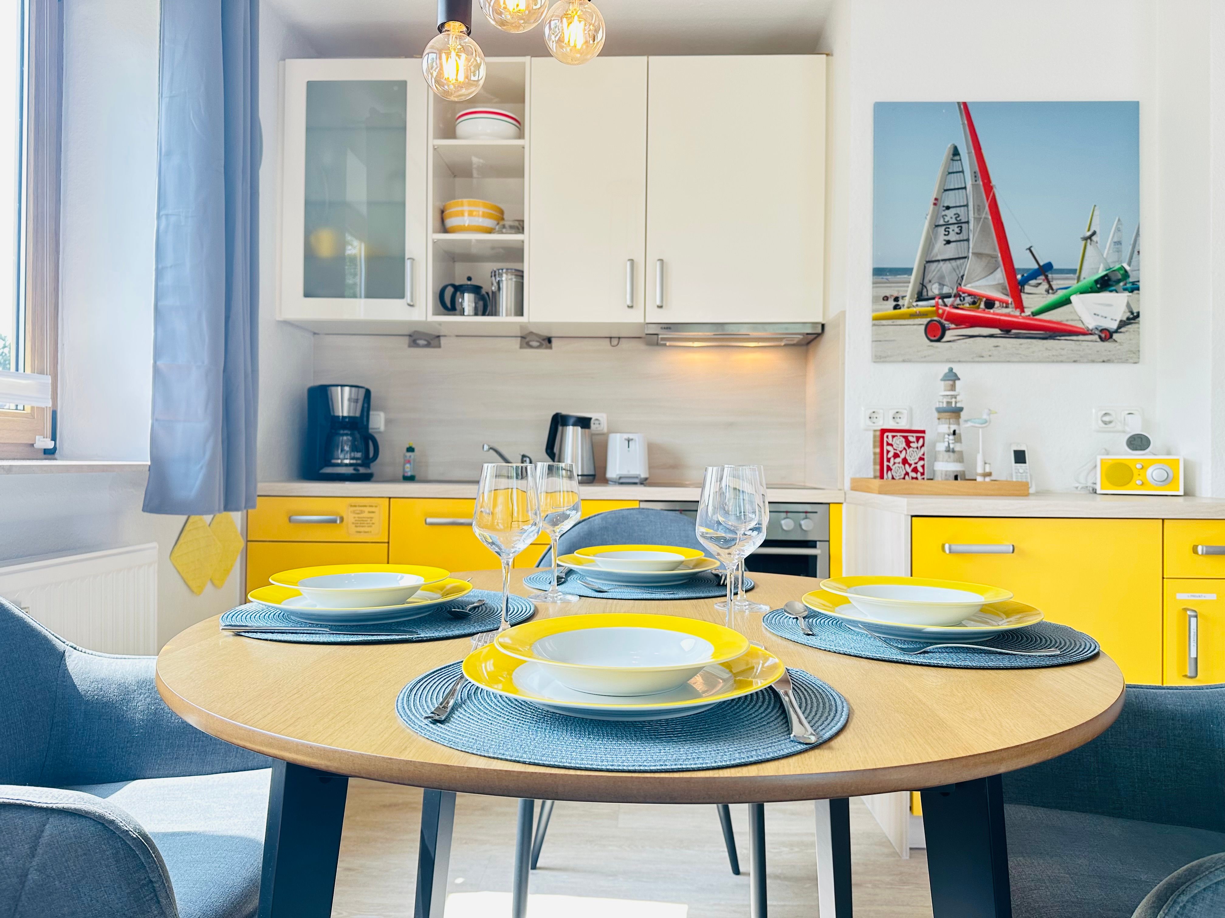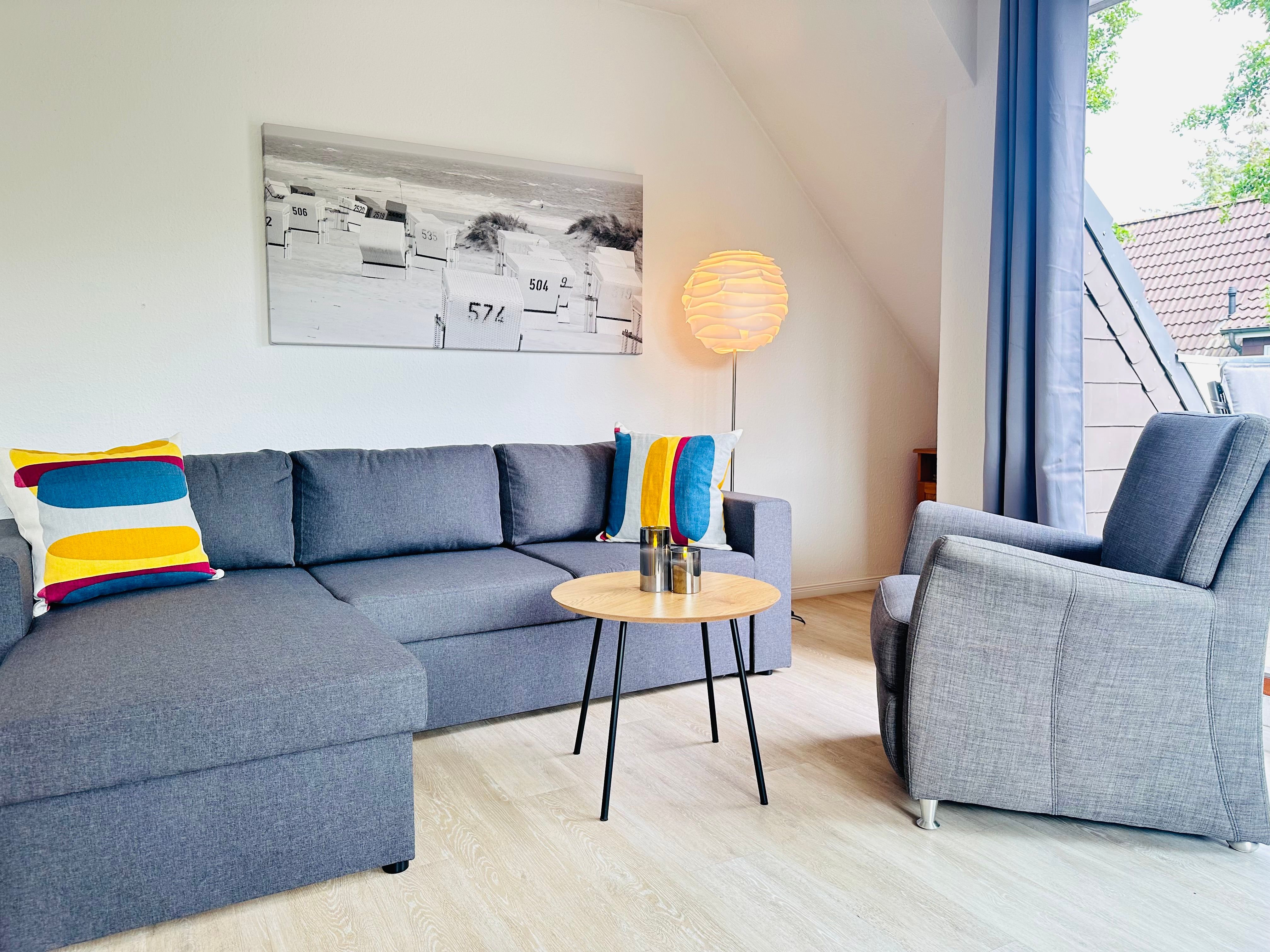 Die Ferienwohnung Sünnblööm bietet auf etwa 55 qm eine gemütliche und liebevoll eingerichtete Unterkunft in zentraler und dennoch ruhiger Lage im Ortsteil Dorf. Die Wohnung befindet sich im Obergeschoss und besticht durch eine hochwertige Ausstattung, die ein authentisches Urlaubsgefühl vermittelt. In wenigen Gehminuten erreichen Sie sowohl den Seedeich als auch das Zentrum des Dorfes mit verschiedenen Restaurants und Einkaufsmöglichkeiten.